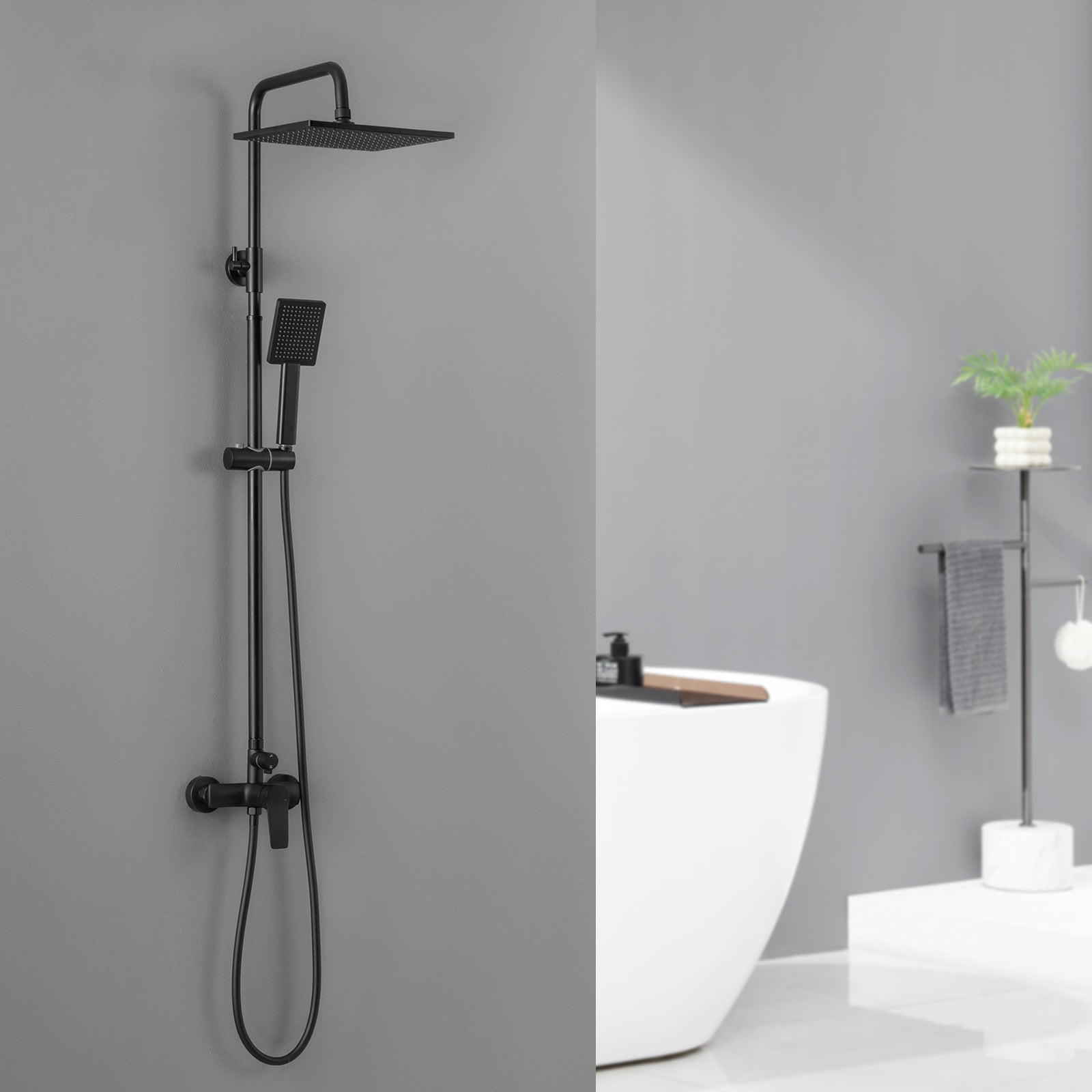 Colonne de Douche Noir avec Robinetterie Ensemble de Douche Hauteur Réglable 2 Fonctions avec Douche de Tête et Douchette à Main