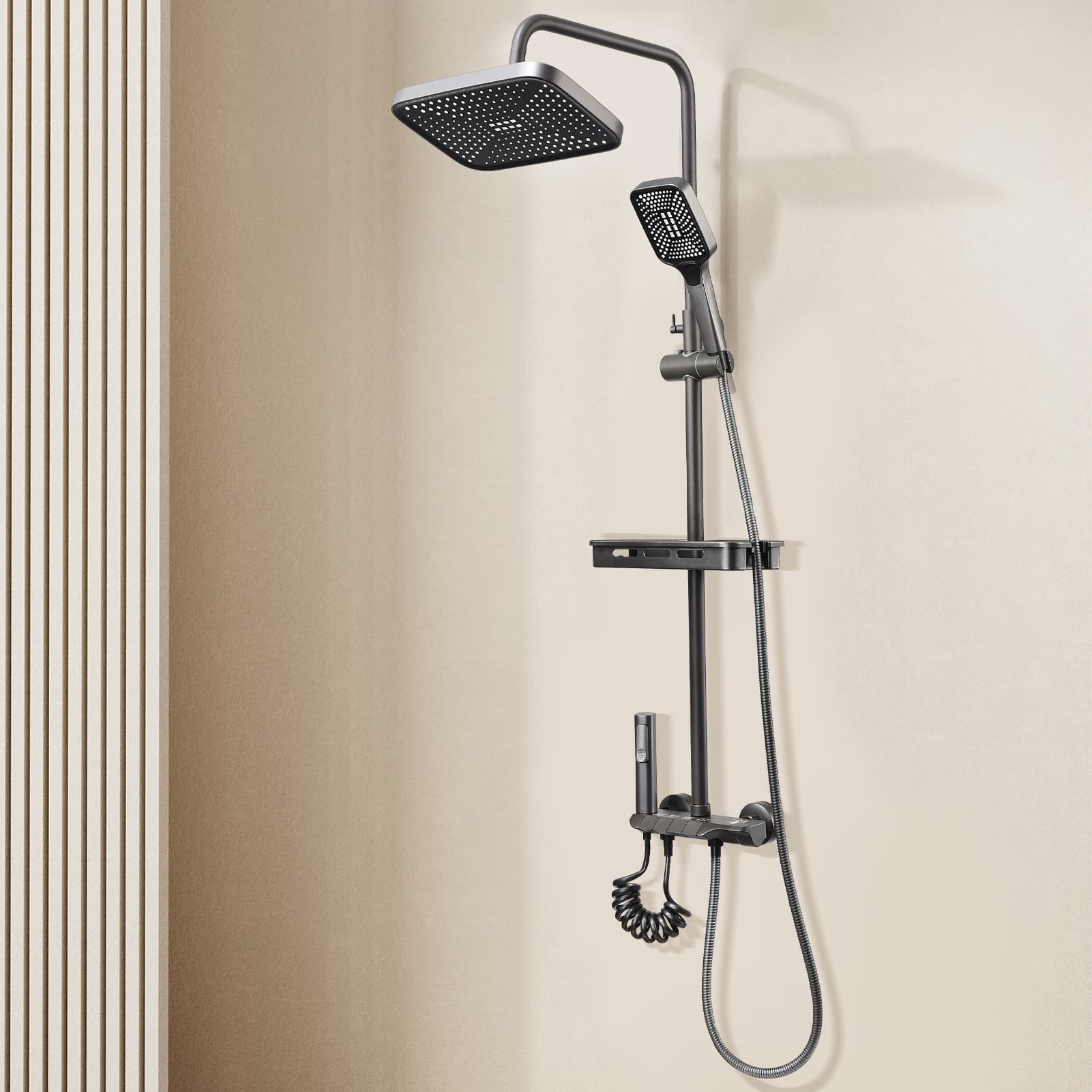 Colonne de douche noire, ensemble réglable en hauteur pour salle de bain, système avec mitigeur et affichage de température