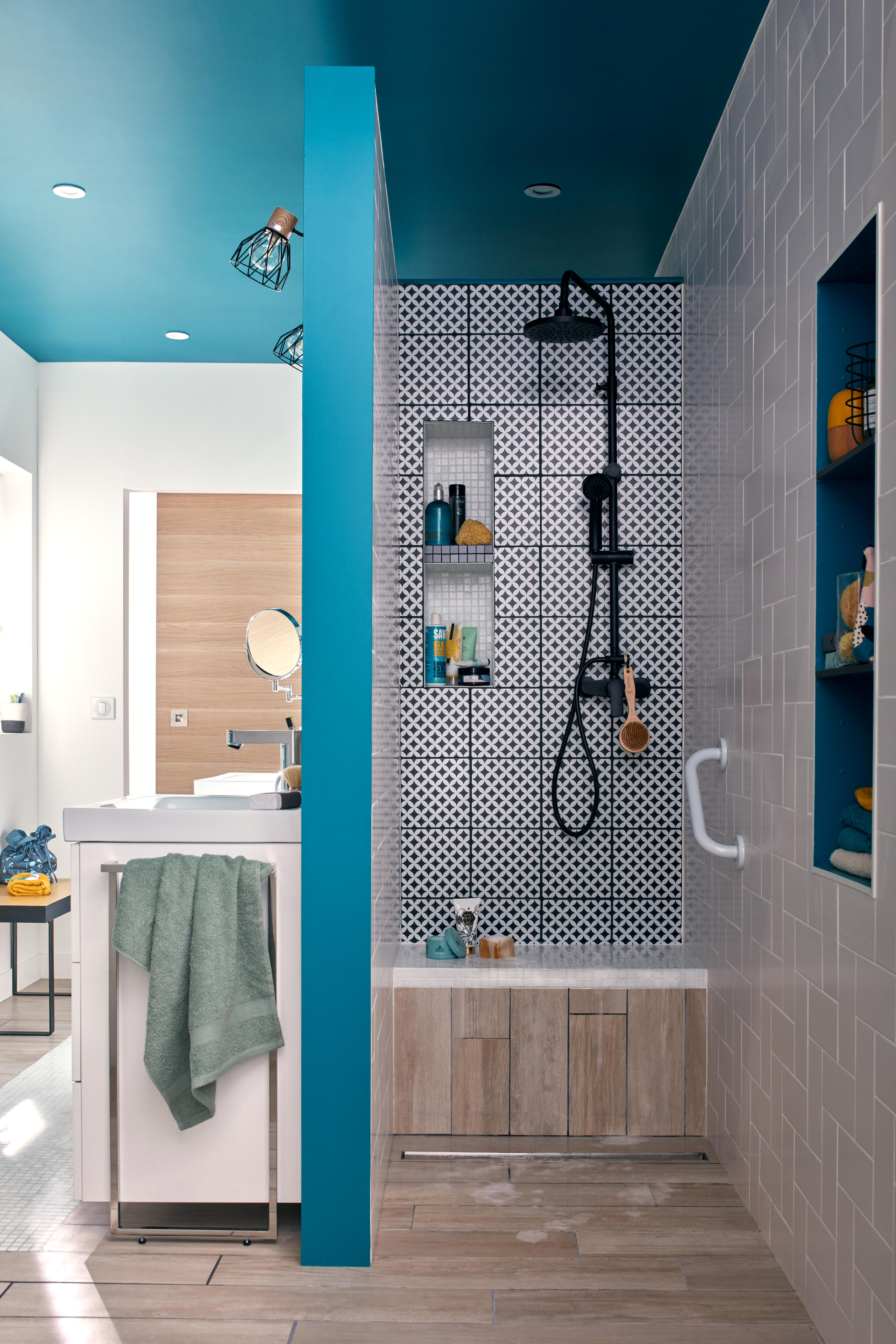 | Support du pommeau de douche | Réglable en hauteur, intégré au tube |