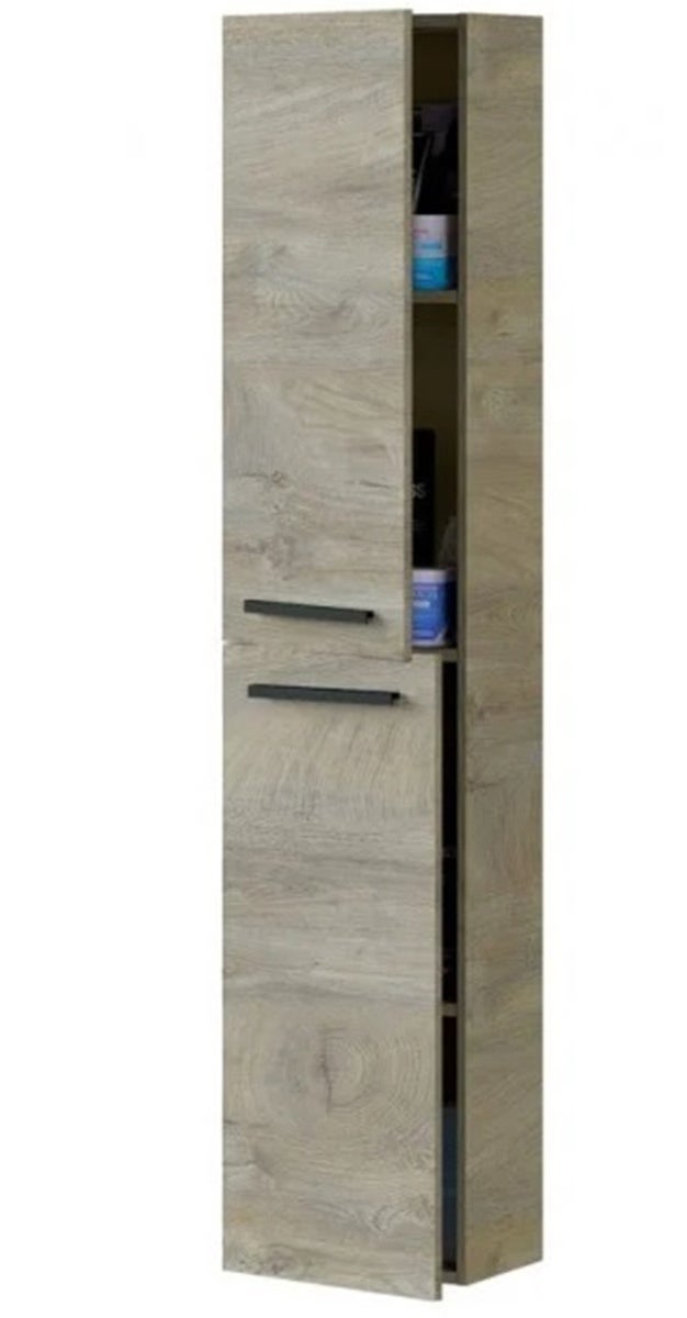 Colonne Suspendue à accrocher au mur avec 2 portes et étagères réglables à l'intérieur. Chacune des portes mesure 75 cm de haut. coloris Alaska chêne à nœuds, s'adaptera avec n'importe quelle salle de bain. Pratique et facile à monter. Poignées en aluminium laqué noir mat positionnées horizontalement et centrées sur la partie inférieure et supérieure de chaque porte. Dimensions de la colonne : Longueur 30 x Hauteur 150 x Profondeur 25 cm. C'est un meuble d'appoint très complet et pratique, vous pouvez monter les portes indistinctement à droite ou à gauche. Finition : Alaska chêne à nœuds. Poids : 17 KG. Le dispositif de fixation des meubles au mur sont inclus. (Utilisez la quincaillerie adéquat à votre type de mur). Produit de fabrication Espagnol certifié PEFC.