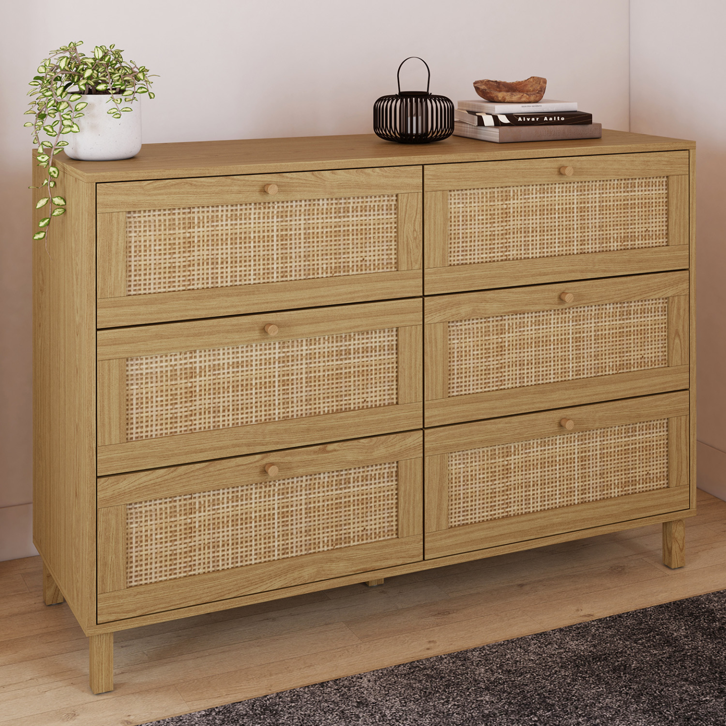 Commode 6 tiroirs HANAE 115 cm effet naturel cannage