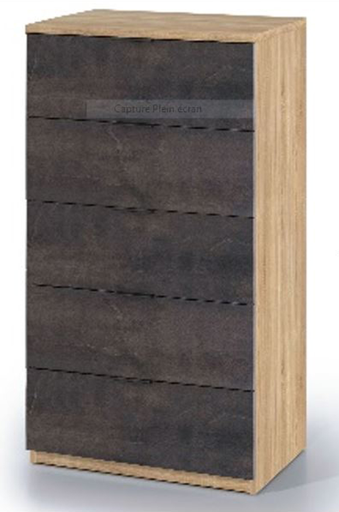Commode avec 5 tiroirs coloris chêne canadian et effet industriel vieilli. Un design contemporain qui apportera une touche de modernité dans une chambre, un salon ou bien encore dans une entrée ! Dimensions : 110 x 60 x 40 cm. Coloris : chêne canadian et effet industriel vieilli. Poids : 30 kg
