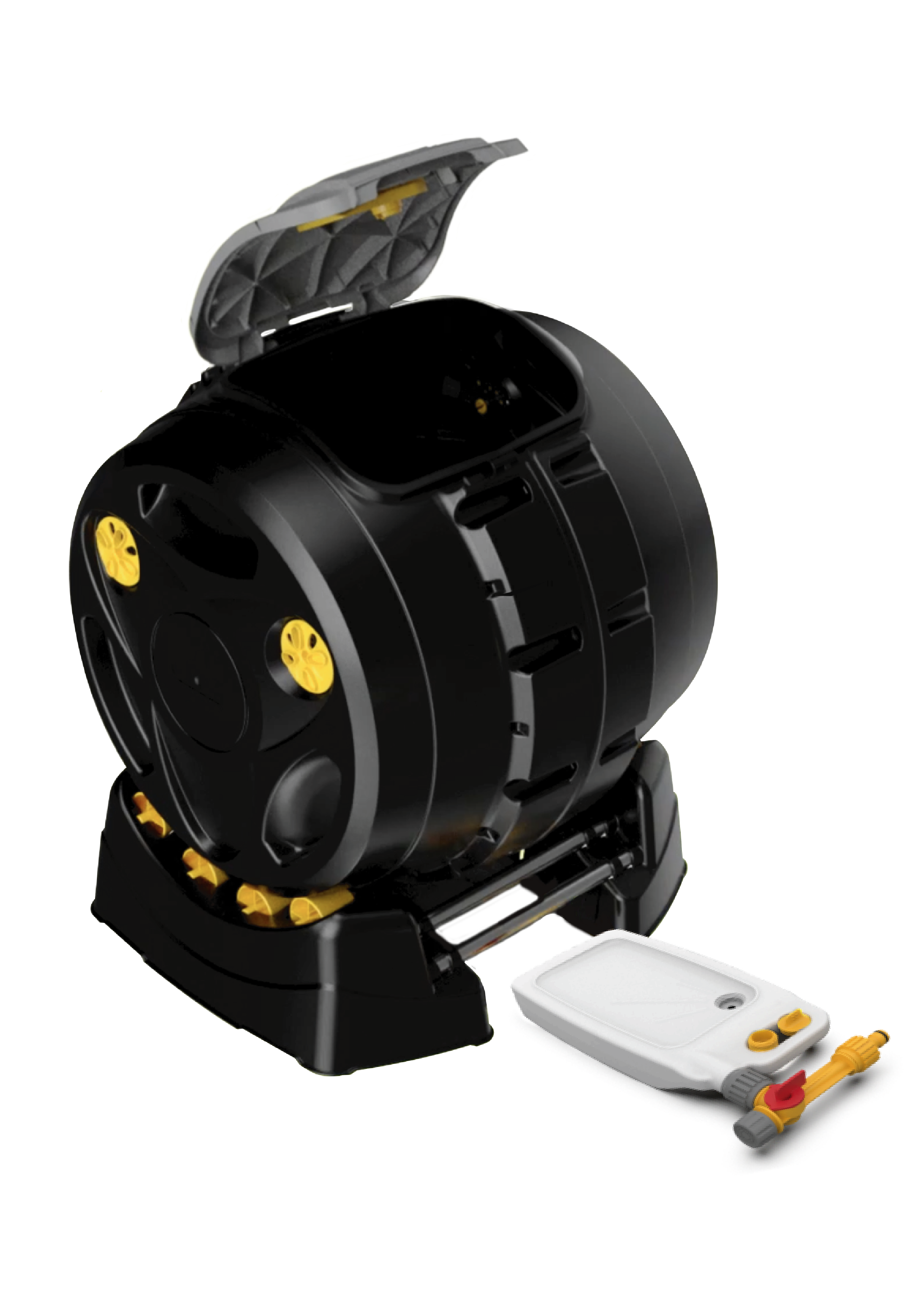 • 3 fois plus rapide que les composteurs classiques : compost prêt en seulement6 à 8 semaines • Pratique pour récupérer le compost grâce au tambour amovible et la large ouverture • Enrichissez la terre de vos plantes grâce au réservoir pour récupérer le jus de compost, avec applicateur intégré “Click & Spray” • Pas de nuisibles (rongeurs) grâce à la conception hermétique • Peu encombrant, il trouvera facilement une place au jardin, garage ou balcon • Fabrication avec plus de 90% de plastique recyclé et 100% recyclable