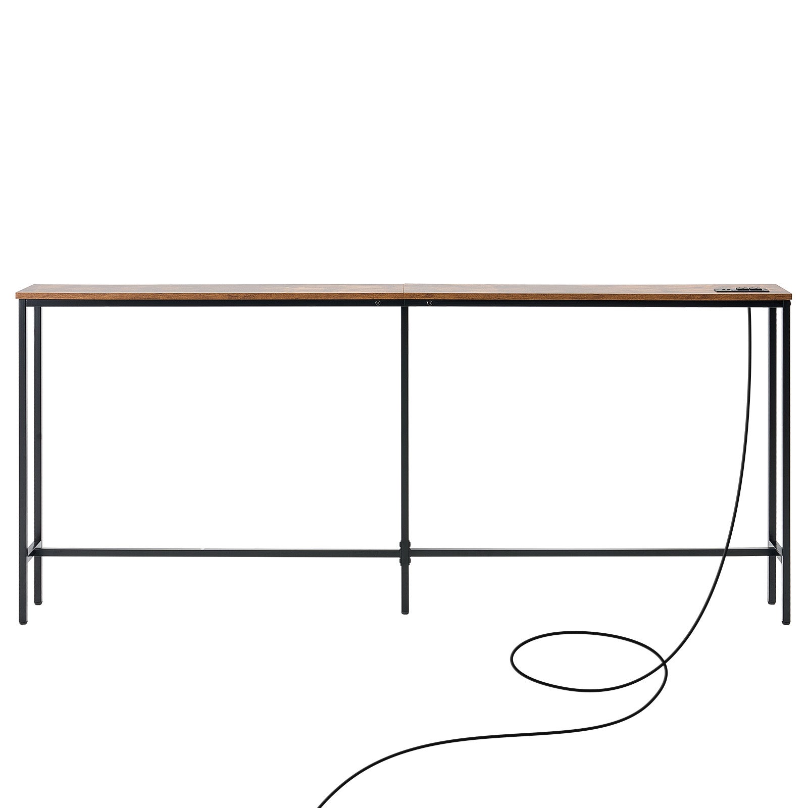 Console étroite 180 cm,SucceBuy meuble d'entrée,structure en métal,station de charge,pour couloir ou salon,finition marron et noir