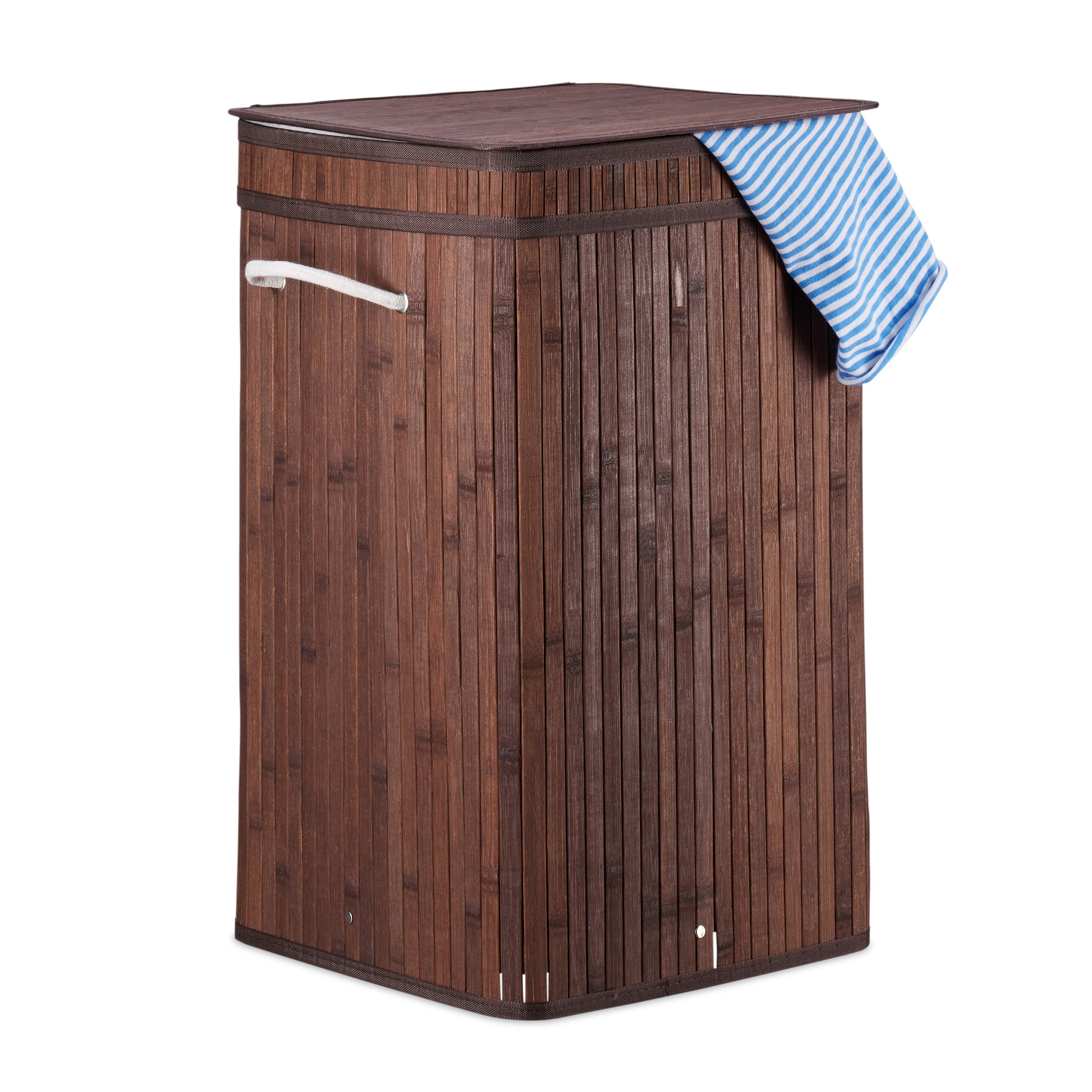 Corbeille à linge pliable, Bambou, avec anse, 70 litres, couvercle, HxlxP 63 x 36 x 36 cm, marron, Relaxdays
