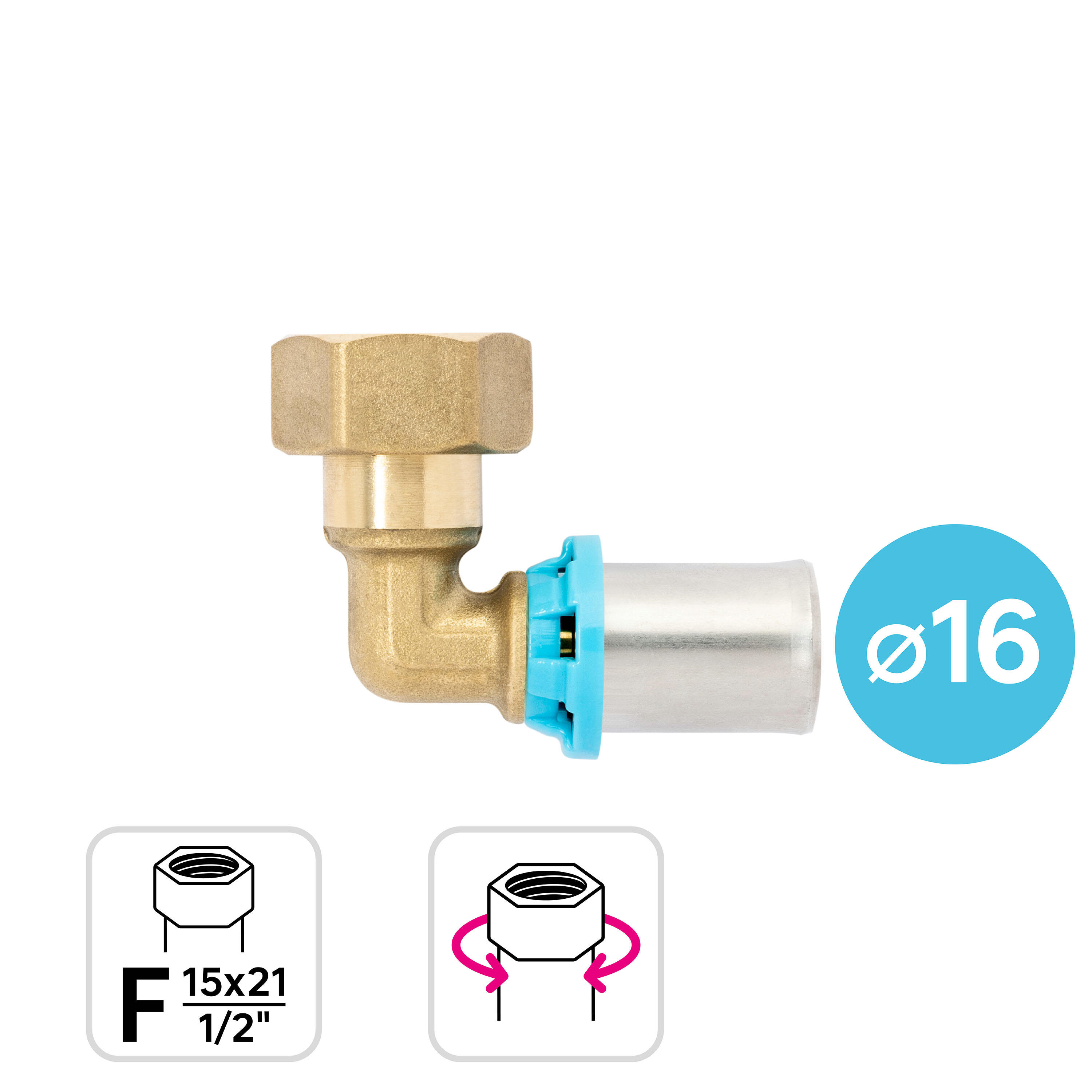 Coude écrou-libre à sertir multicouche ⌀ 16 F15x21 (1/2"), Equation