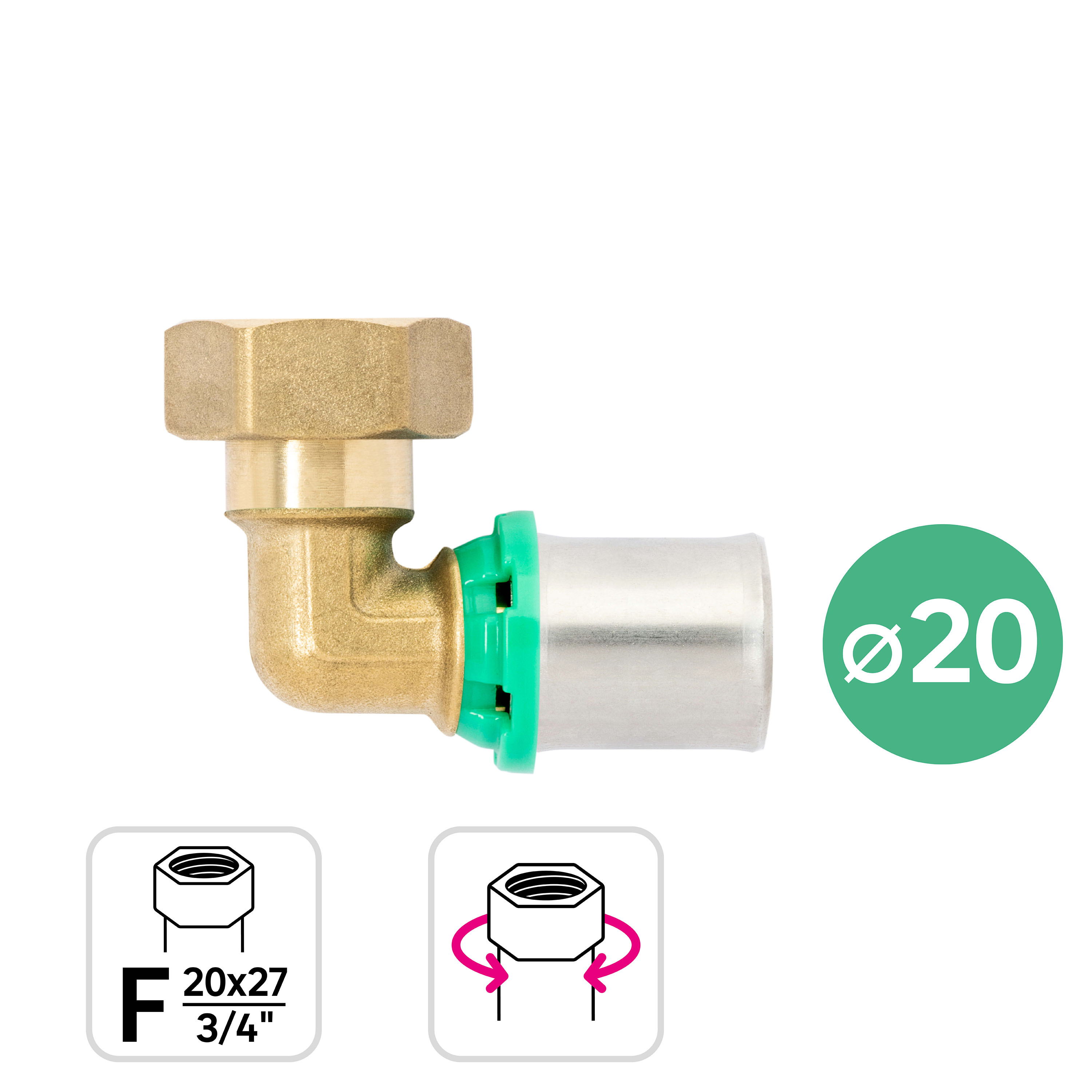 Coude écrou-libre à sertir multicouche ⌀ 20 F20x27 (3/4"), Equation