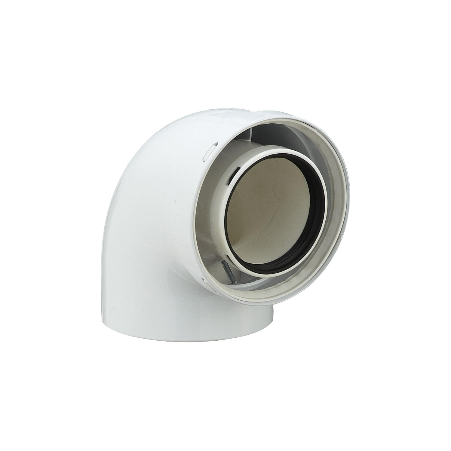 Coude 90° pour dévoiement, concentrique, utilisation intérieur, diamètre 60/100, finition blanche