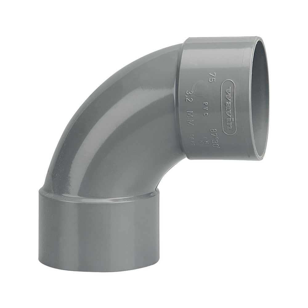 Coude PVC WAVIN 3025822 87 30 D75 75 mm double femelle gris emboîture à coller