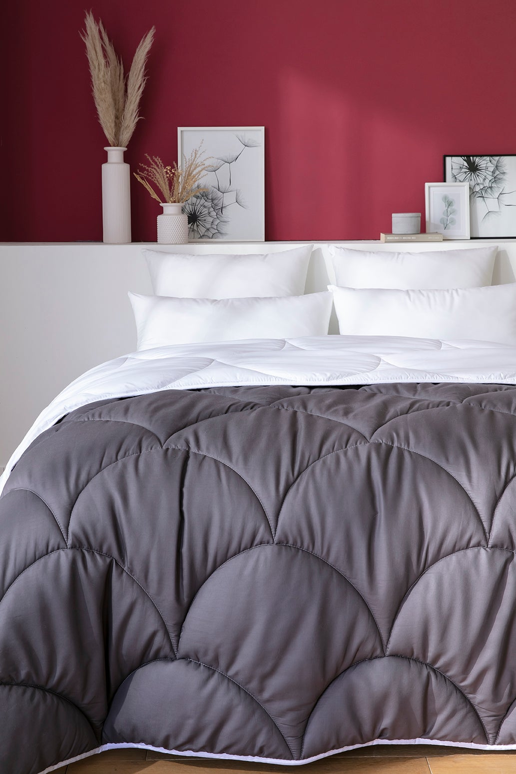 Changez l'ambiance de votre chambre selon vos envies avec notre couette bicolore. Un côté gris et un côté blanc avec un piquage original. Enveloppe en polyester microfibre toute douce et garnissage en polyester. Couette tempérée (300g/m²), idéale en mi-saisons ou pour les chambres dont la température se situe entre 20°C et 22°C. Lavable en machine à 40°C.