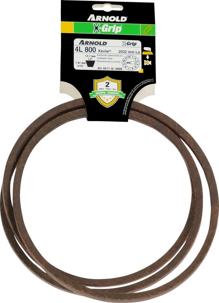 Les courroies X-GRIP de la marque ARNOLD sont garanties 2 ans ! Vous trouverez ci-dessous les conditions de garantie des courroies X-GRIP de la marque ARNOLD, sous la rubrique « Informations ».