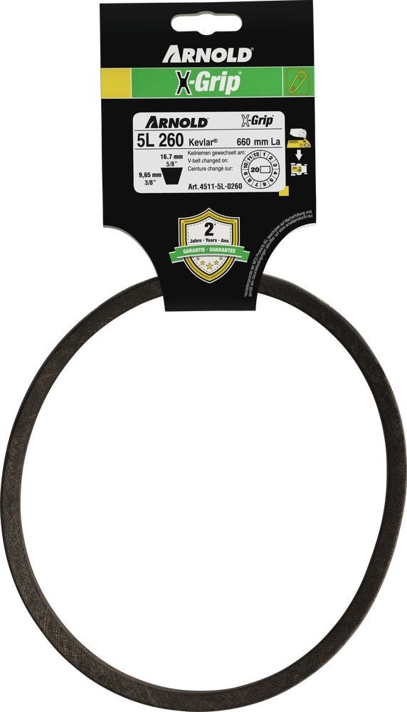 Les courroies X-GRIP de la marque ARNOLD sont garanties 2 ans ! Vous trouverez ci-dessous les conditions de garantie des courroies X-GRIP de la marque ARNOLD, sous la rubrique « Informations ».