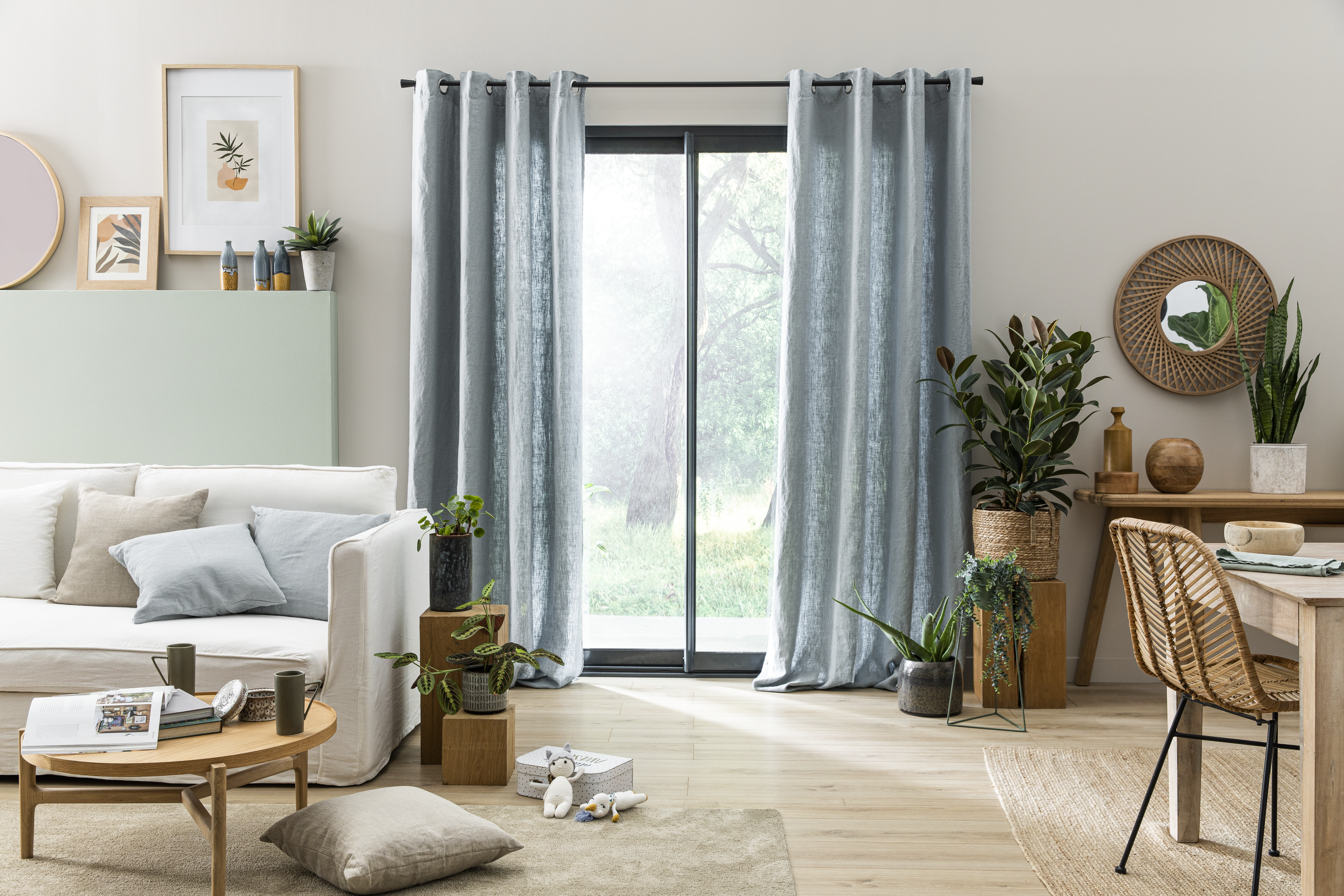 Coussin Danae, 100% lin bleu gris l.45 x L.45 cm INSPIRE