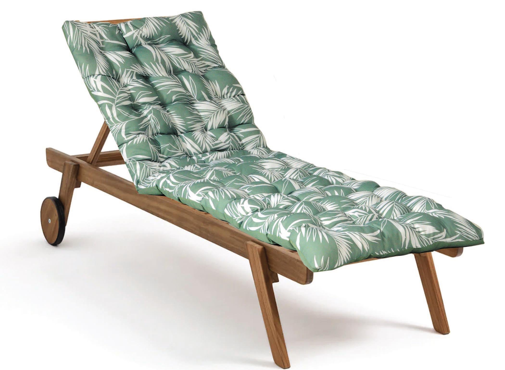 Coussin matelassé bain de soleil, transat, en Tissu déperlant 190x60cm bicolore Imprimé Vert et Uni Vert, DYLREV