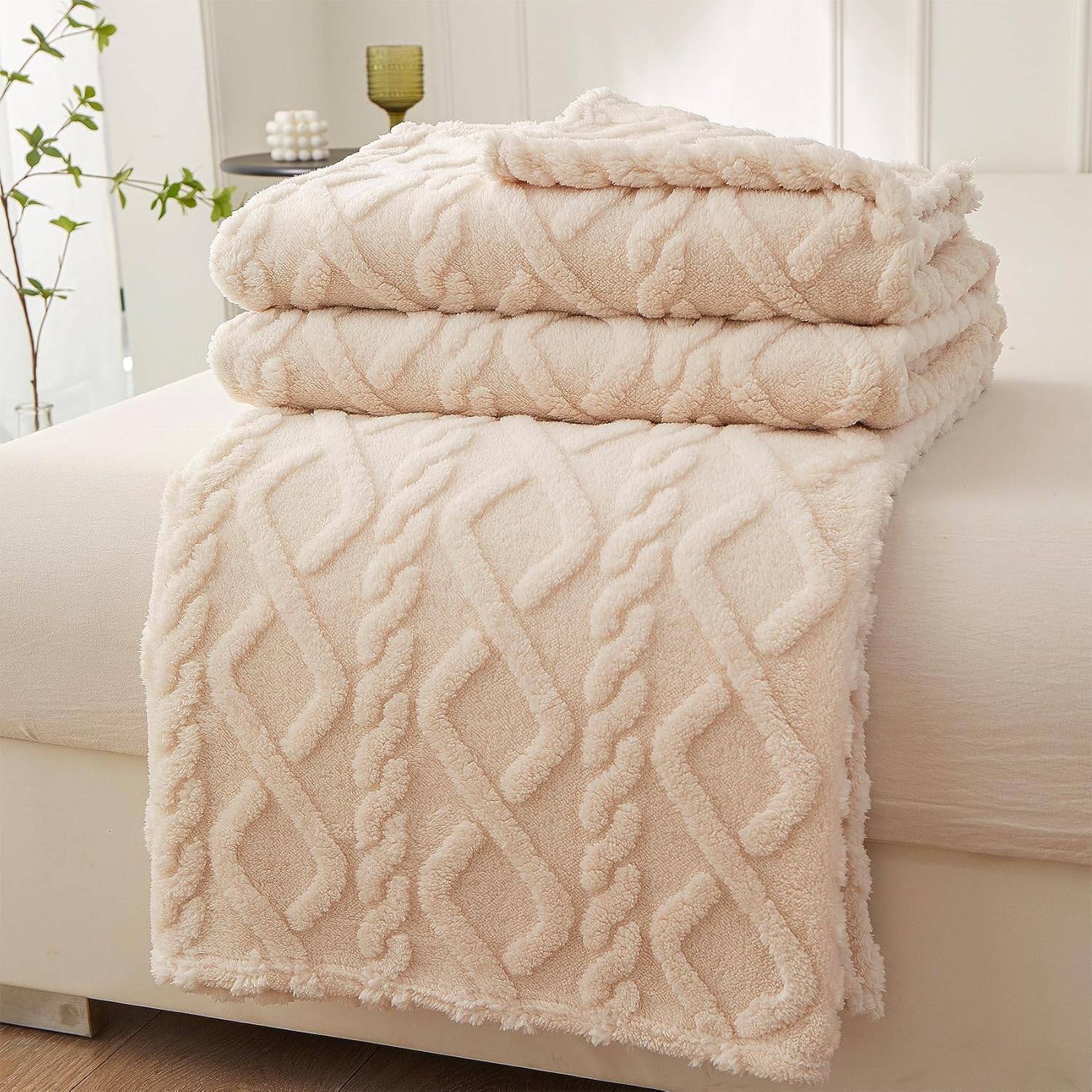 Couverture de canapé chaude en flanelle, couverture en tricot torsadé 3D, couverture de lit en polaire microfibre moelleuse, 150*200CM,beige
