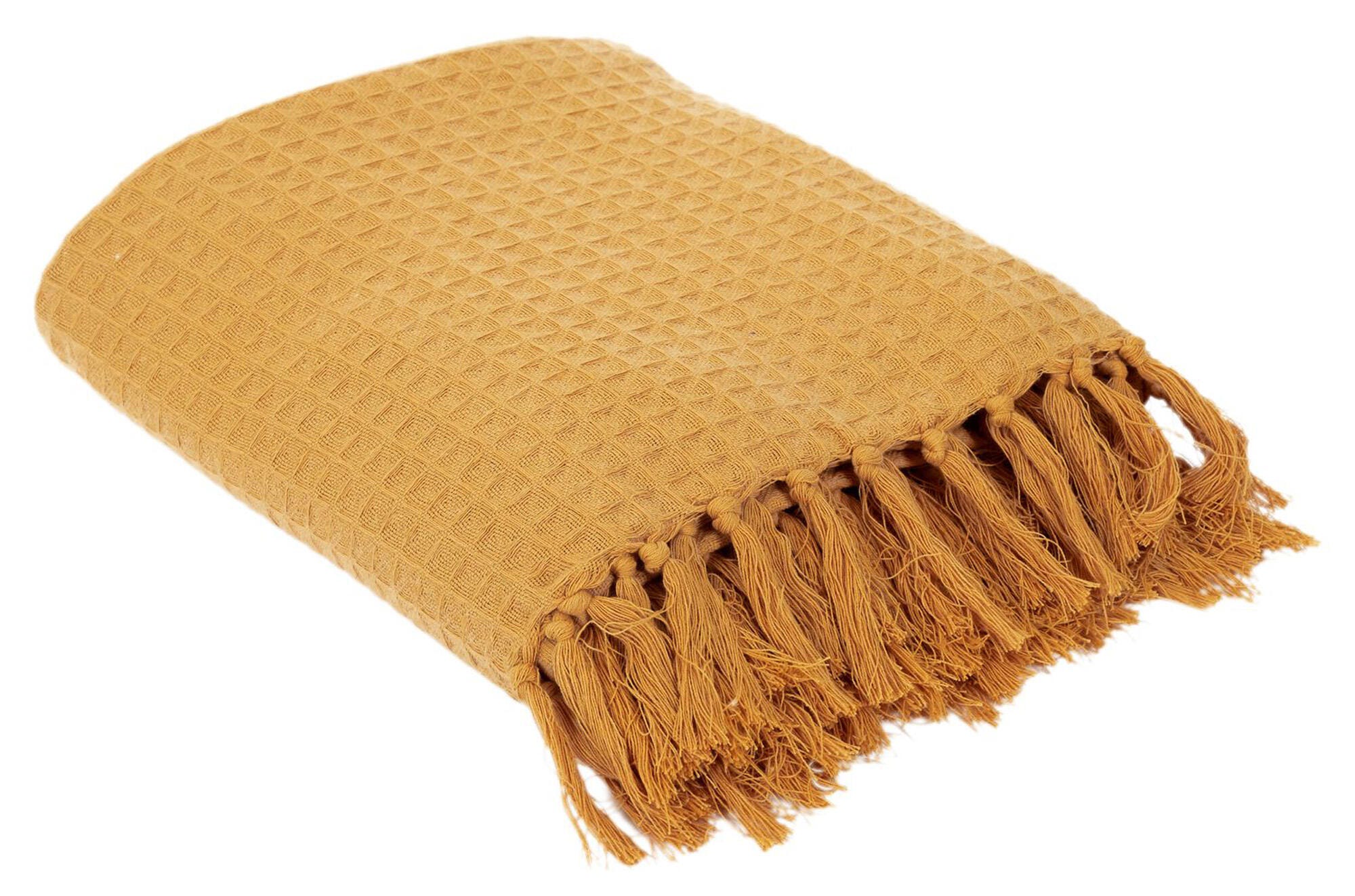 Décorez votre canapé avec originalité grâce à cette housse de canapé jaune. Vous adorerez son design en relief et ses franges. Dimensions : 170x250x0.5 (largeur x longueur)
