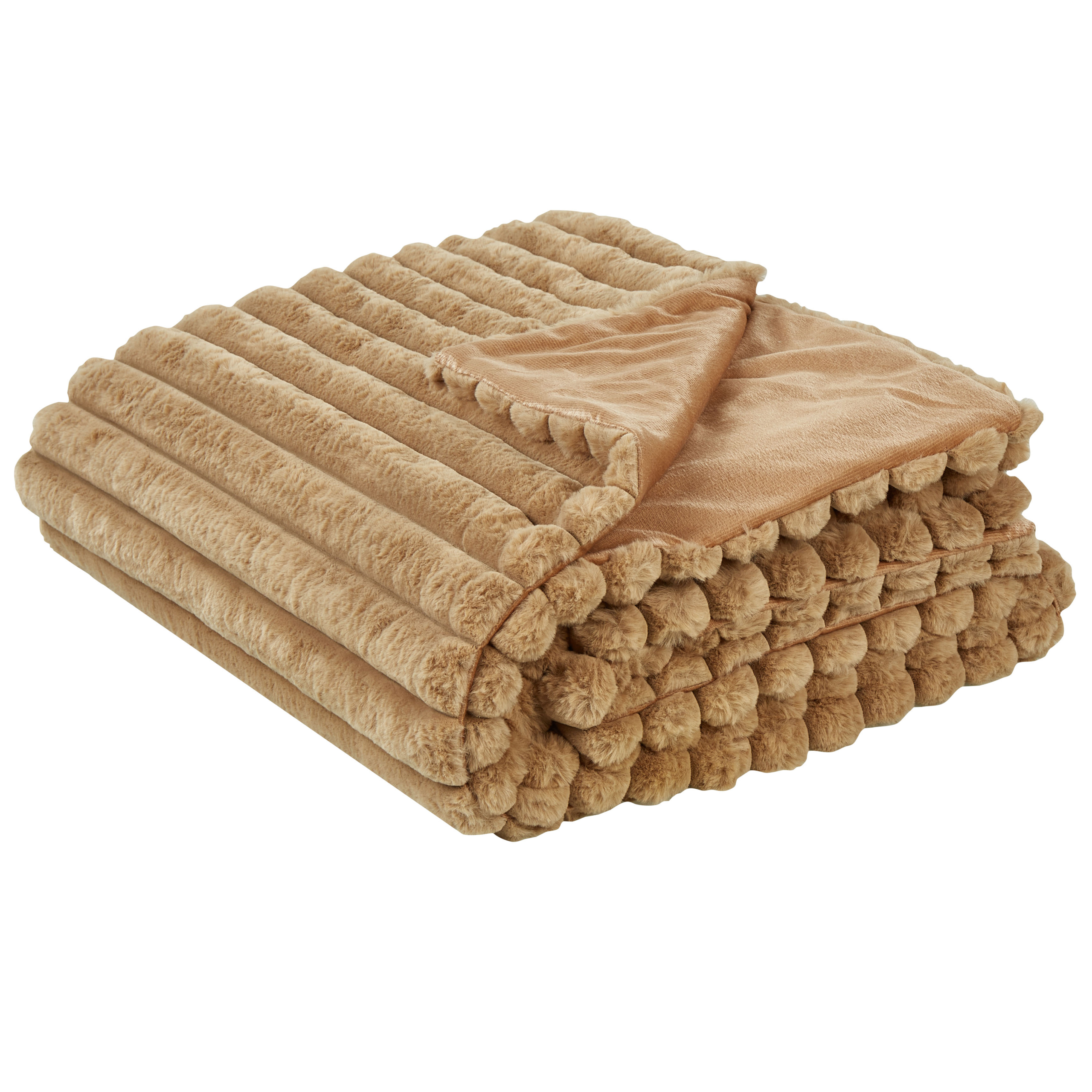 Couvre-lits RAKYA Fourrure synthétique 200 x 220 cm Marron clair