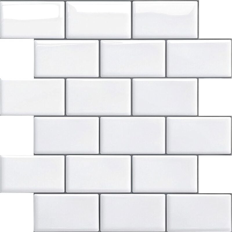 Credence Adhésif pour Cuisine Salle de Bain, Faux Carrelage Adhésif ,Imperméable Metro 3D Carrelage PVC Adhésif Mural, 4 Pièces (Blanc, 4 Feuilles)