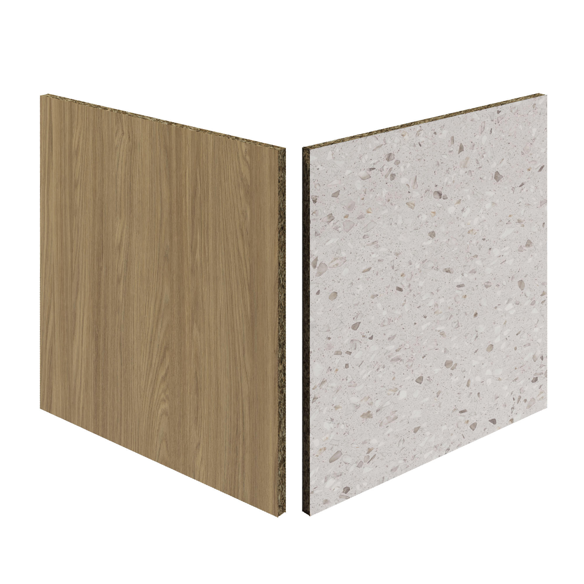 Crédence stratifié Chene arbois/Terrazzo granito L.300 x H.64 cm, Ep.9 mm