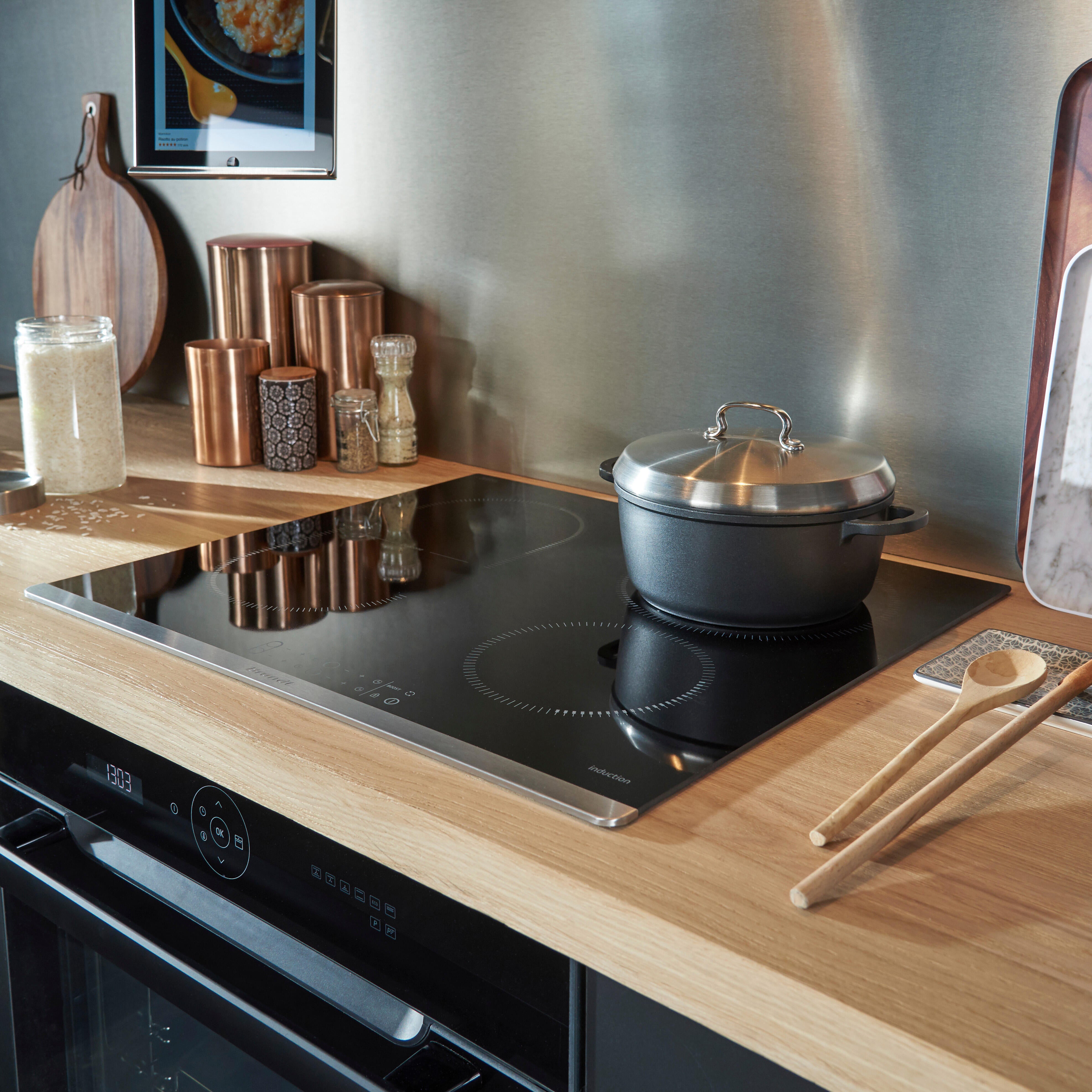 Préserve la propreté des murs, décore la cuisine. Peut se poser uniquement derrière une plaque induction.