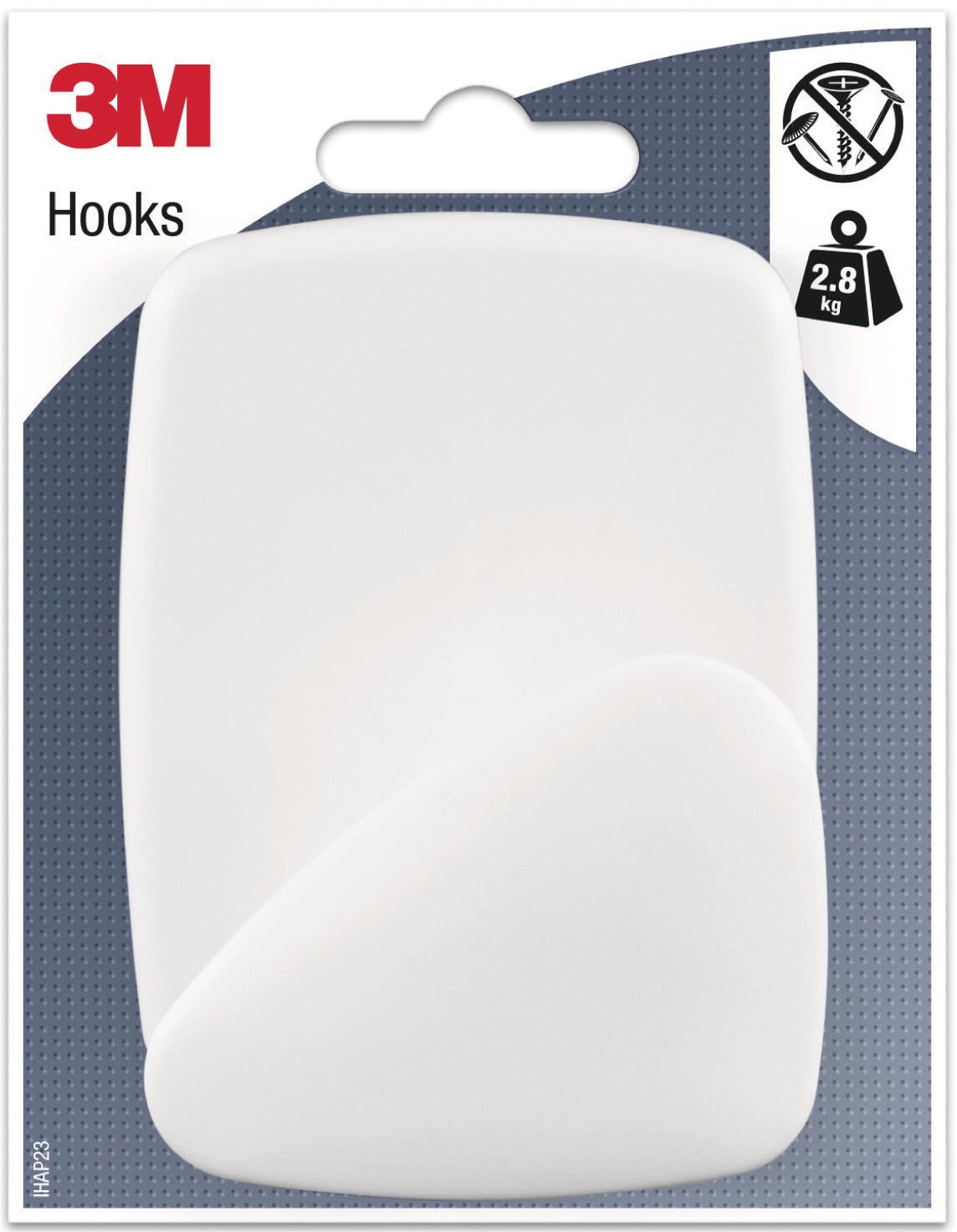 Patère adhésive blanche 3M™ 1 crochet. Fort pouvoir adhésif. Convient parfaitement aux surfaces peintes et carrelées