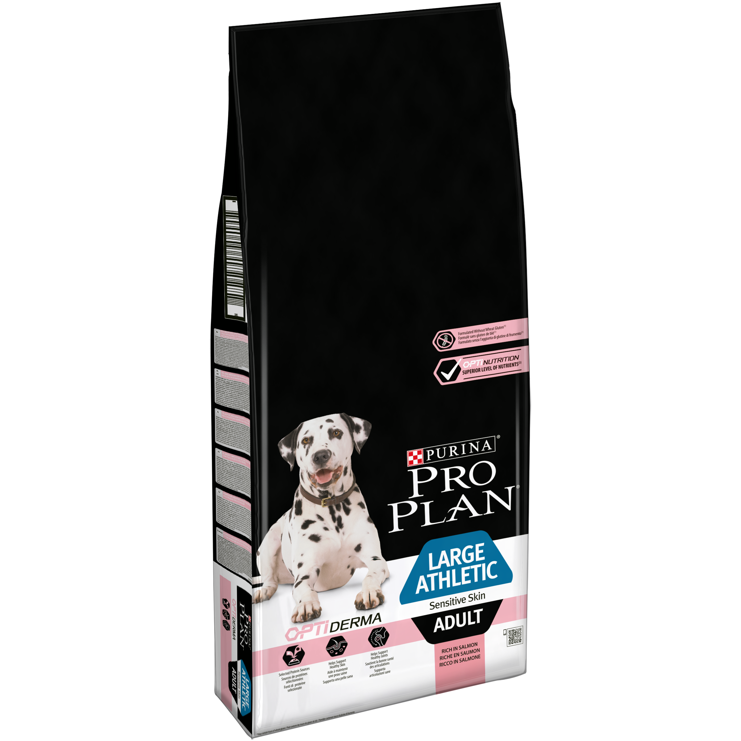 PURINA PRO PLAN Large Adult Athletic Sensitive skin avec OPTIDERMA™ est une alimentation complète développée pour les chiens de grande taille et de morphotype athlétique ayant une peau sensible. La formule est équilibrée afin de satisfaire les besoins nutritionnels journaliers du chien, tout en ciblant cette sensibilité.