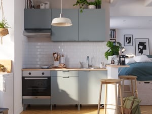 Dans une petite cuisine, l'objectif est de gagner de la place. Mais comment faire pour qu'elle soit pratique et conviviale ? Bien rangée et organisée, une cuisine en kit ou une composition de cuisine, est fonctionnelle et conviviale. En choisissant du mobilier adapté et en multipliant les astuces de rangement, une petite cuisine peut être équipée comme une grande. Aussi vous retrouverez dans notre gamme des propositions de cuisine équipée, semi-équipée, dont la plupart sont modulables et personnalisables. Notre gamme de composition de cuisine Delinia ID vous permettra d’avoir, pour un prix raisonnable, une petite cuisine à votre gout dotée d’une qualité irréprochable. Chez Leroy Merlin, découvrez les "Meubles de cuisine ", pour agrandir, personnaliser et rendre fonctionnelle votre cuisine. Nos produits sont disponibles en magasin selon les stocks ou livrés rapidement à votre domicile.