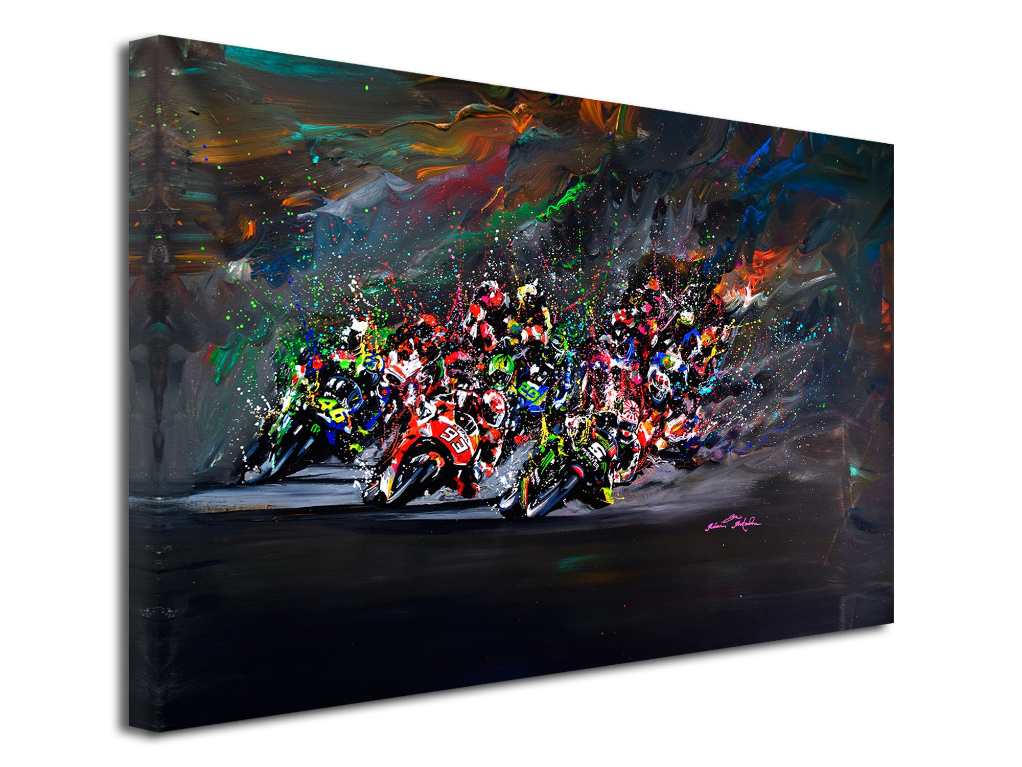 DECLINA, Tableau toile imprimée, Tableau toile reproduction peinture Depart Moto GP, 150x100 cm