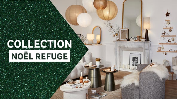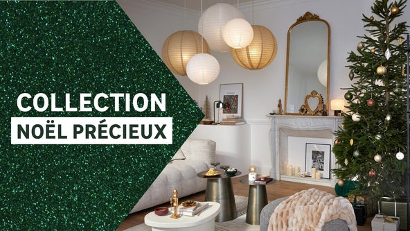 Célébrez les fêtes de fin d'année à travers trois collections singulières et chaleureuses, pour décorer votre intérieur avec style. Avec Noël Précieux l’élégance s’invite dans la maison, grâce à un décor raffiné composé de velours, dorures et reflets de lumières. La collection Noël Refuge nous enveloppe dans une atmosphère cosy et réconfortante, où les matières cocooning et le bois clair rappellent le charme d’un chalet au cœur de l’hiver avec une douce odeur de pain d'épice. Quant à Noël Crazy, elle nous plonge dans un univers festif, qui ose la fantaisie avec ses couleurs pop et ses motifs décalés pour des fêtes pleines de vitamine et de bonne humeur. Trois collections pour imaginer, créer et laisser la magie de Noël s’inviter chez vous. Disponible en magasin et en ligne, du 1er Novembre au 31 Décembre 2025.