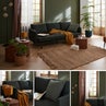 Créez une pièce paisible inspirée d'un week-end à la campagne. Imaginez-vous dans un canapé, profitant de moments de sérénité. L'association du vert sapin, du bois, des matières naturelles et des textiles confortables vous enveloppe et vous rapproche de la nature. Les cadres en bois ajoutent du charme à la maison, où règnent simplicité et harmonie. Le tapis de salon en jute SOHAN Inspire réchauffe la pièce. Associez-le à des textiles de différentes textures pour plus de confort. Utilisez le coussin CHARLY Forest 1 Inspire et le plaid LEONORA Pecan 4 Inspire. Tamisez la lumière extérieure avec le rideau SUNNY Terra 3 et le voilage AMINA Trench 6 Inspire. Optez pour des luminaires discrets pour une ambiance chaleureuse. Le lampadaire PECAN Inspire et la lampe à poser AKORA Inspire apporteront une touche contemporaine et colorée.