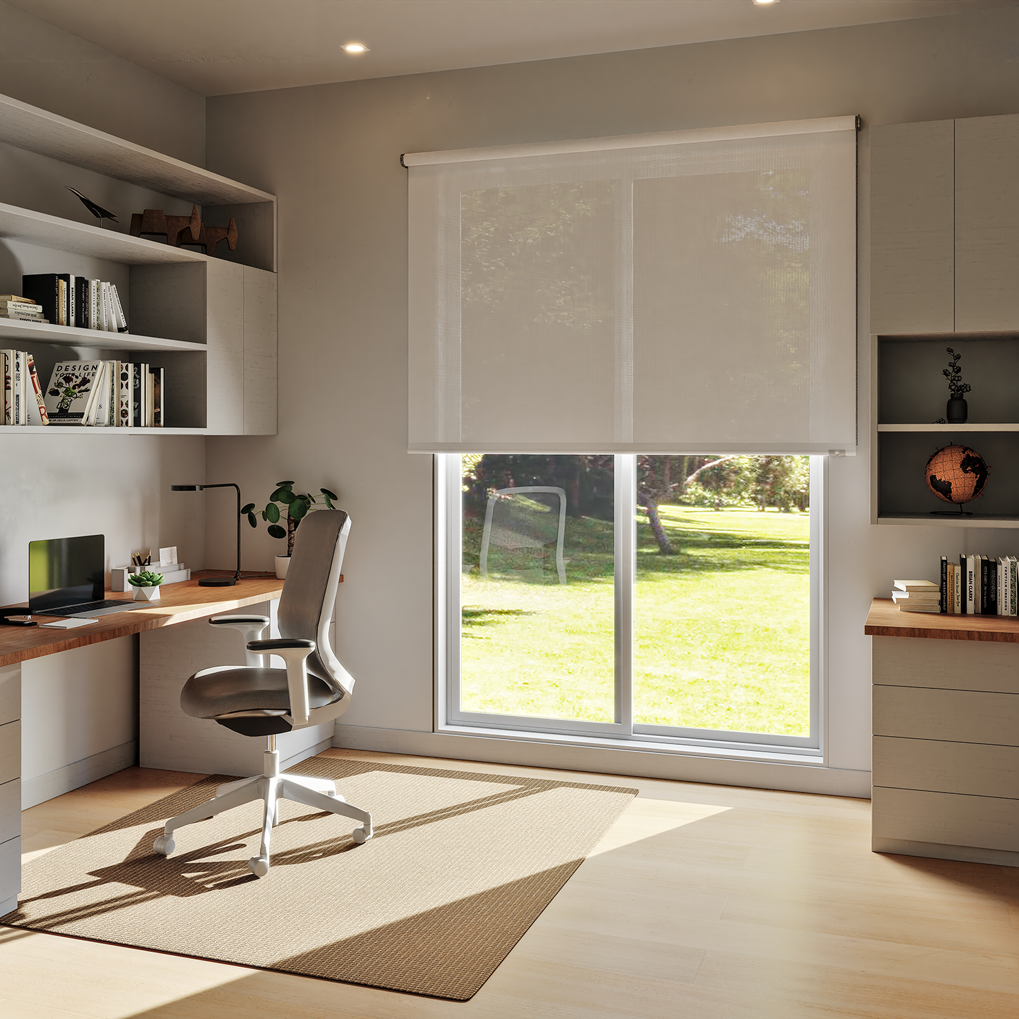 Store enrouleur : simple et efficace, il s’enroule autour d’un tube situé en haut de la fenêtre. Parfait pour les intérieurs modernes. Il permet de moduler la lumière et de préserver l’intimité dans une pièce.