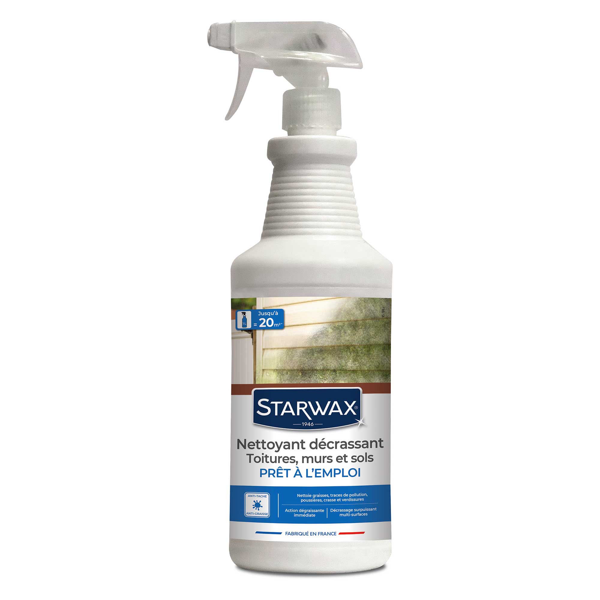 Le nettoyant décrassant concentré Starwax nettoie sans efforts graisses, suies, poussières, salissures tenaces et verdissures, Il est aussi efficace sur les taches d’huiles de moteur, de graisse et les projections alimentaires dues à l’utilisation de barbecue et plancha, Nettoyant multi-supports, il est idéal pour les toitures, les murs et les sols, De plus, il est compatible avec tous types de nettoyeurs haute pression et est facile à rincer. Existe également en format 2L.