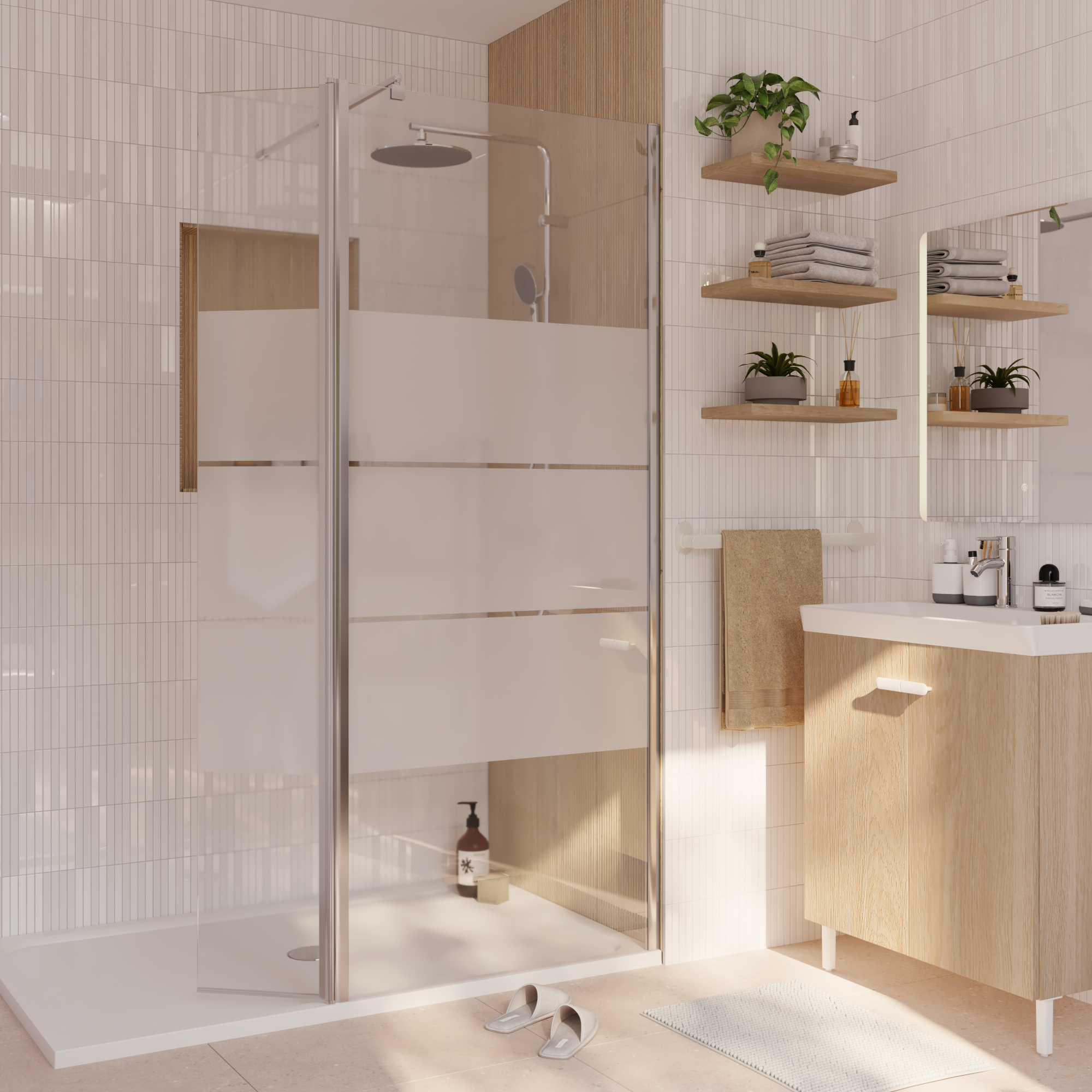 Déflecteur pour paroi de douche verre sérigraphié, l.30 cm, Ep. 6 mm chromé Easy