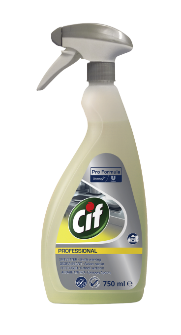 Cif Professionnel Dégraissant Puissant est un produit dégraissant cuisine conçu pour enlever rapidement les graisses et les salissures tenaces. Ce dégraissant puissant pour la cuisine est sans parfum et n'attaque pas l'aluminium. Il convient parfaitement à toutes les surfaces de la cuisine tels que les plans de travail, les plaques de cuisson, les plats chauds, les petits matériels et les portes.