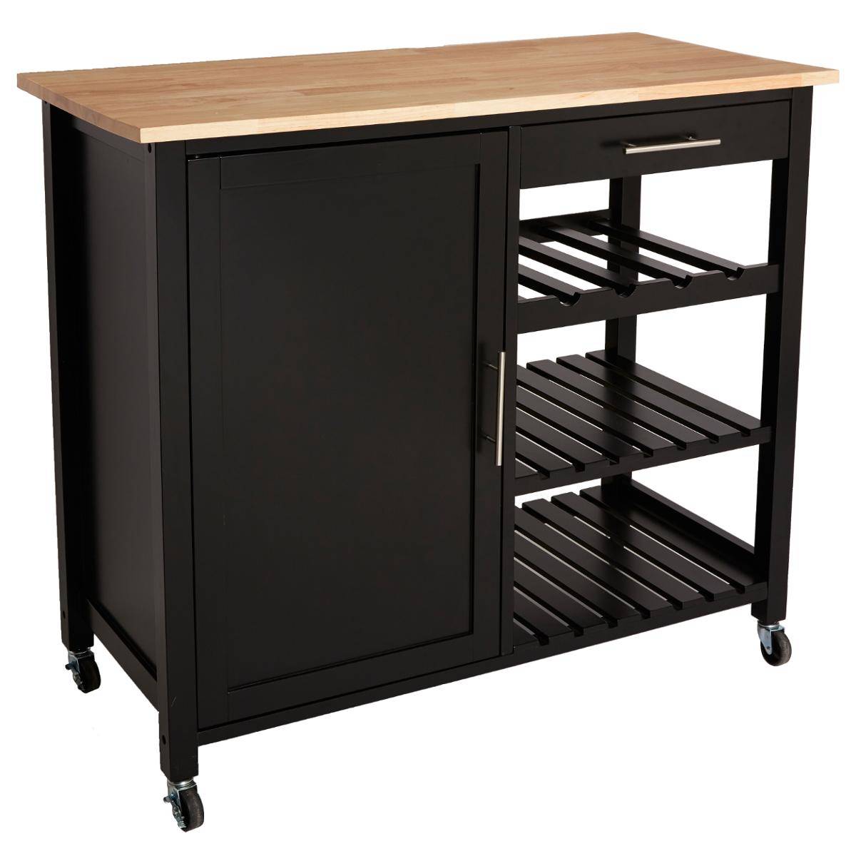 Pratique avec son placard avec étagère intérieure, sa clayette à bouteilles et ses deux étagères, la desserte peut rouler partout. Elle vous permettra aussi de cuisiner grâce à son large plateau en bois naturel. La grande desserte "Claude" saura se rendre indispensable.