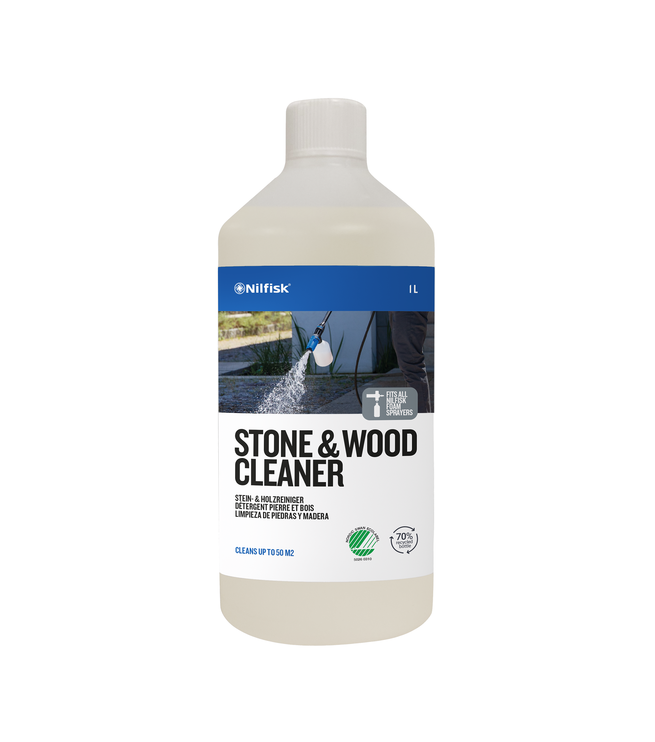 Ce détergent d'un litre à base d’eau, très efficace, fera des merveilles sur la pierre, la maçonnerie et le bois. Il peut Otre utilisé avec les nettoyeurs haute pression Nilfisk, le nettoyant pour patio et le pulvérisateur de mousse.