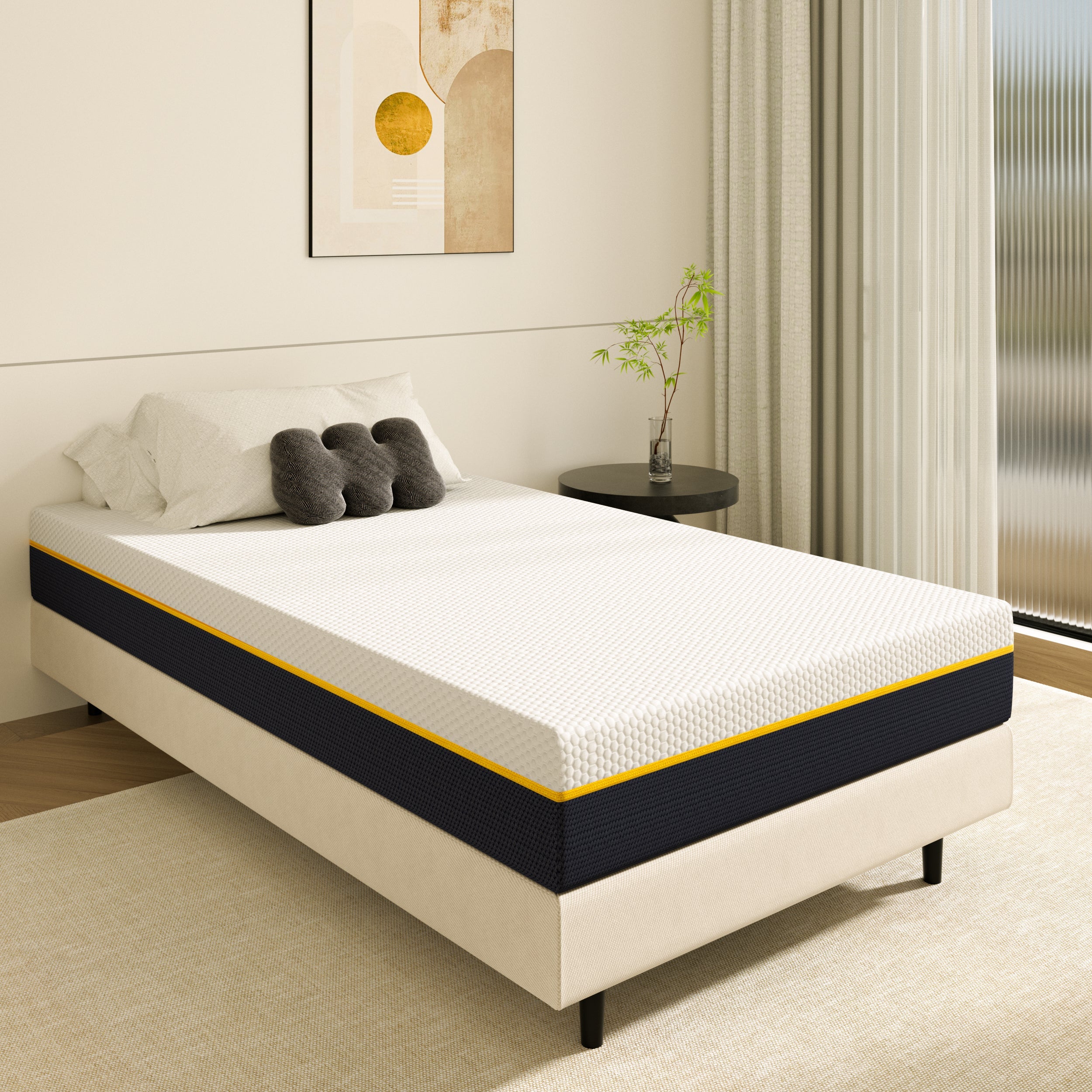 EXPÉDITION ET INSTALLATION FACILES : Le matelas est comprimé, enroulé et emballé dans une boîte compacte pour faciliter l'expédition et l'installation. Une fois reçu et déroulé, le matelas est prêt à retrouver sa forme originale et sa pleine efficacité dans les 72 heures.