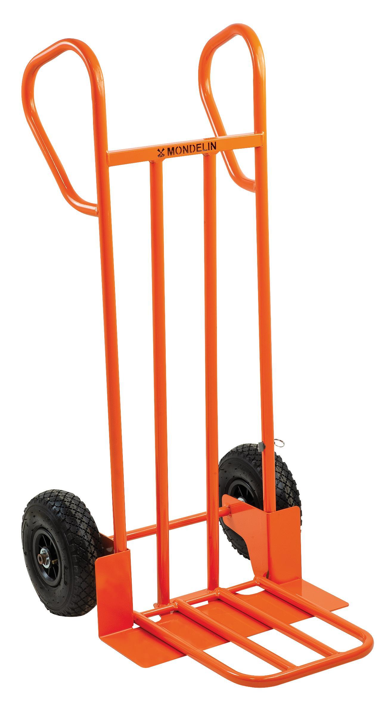 Le Diable AXIS est équipé de roues increvables, ce qui le rend toujours opérationnel. La pelle/bavette rabattable est équipée d'un système de verrouillage par goupille, ce qui évite le basculement de celle-ci lors des déplacements à vide. Les poignées fermées ergonomique offrent une grande maniabilité, en toutes positions et une protection des mains, entre le diable à la charge.