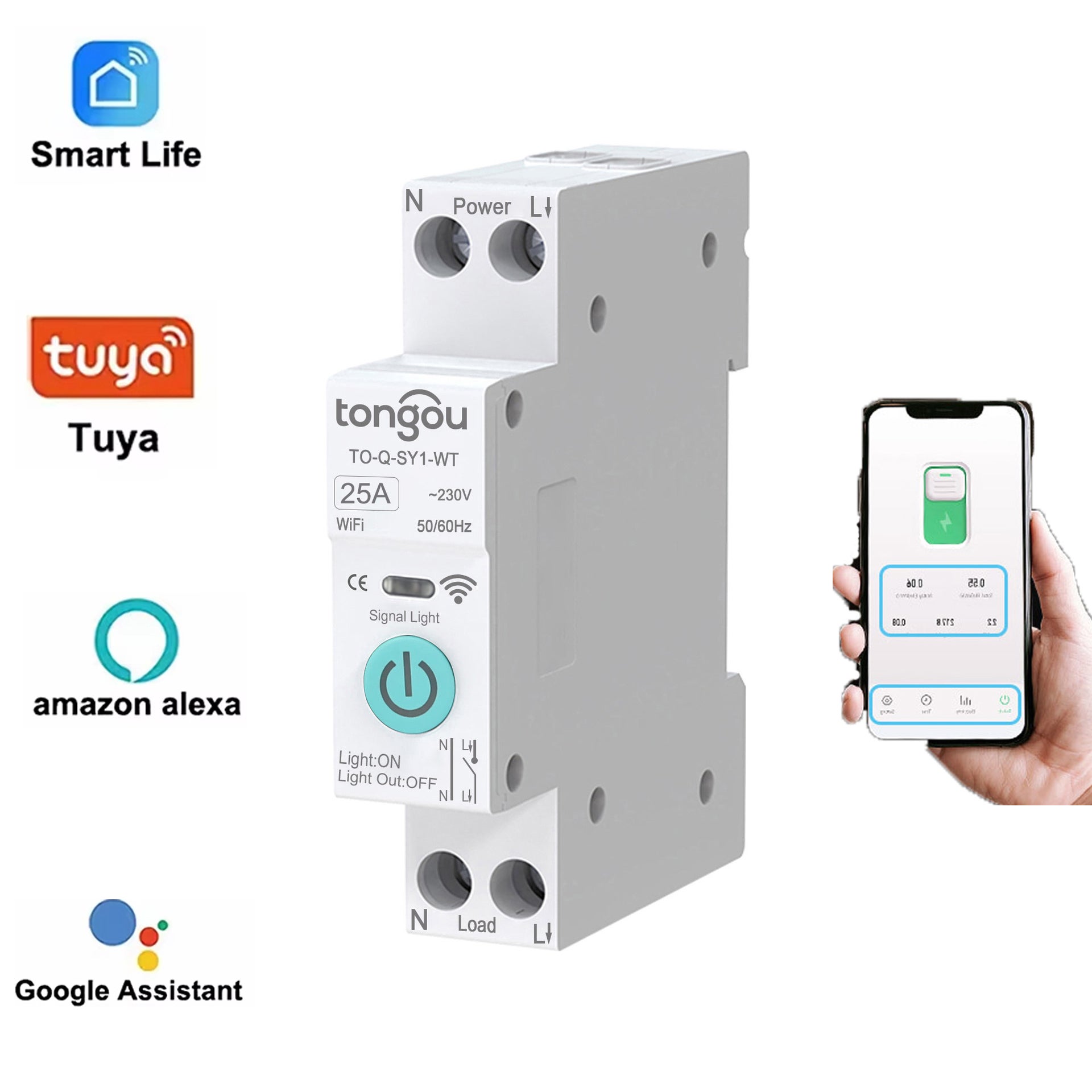 Disjoncteur intelligent Wi-Fi, interrupteur sur rail DIN Wi-Fi - Commande vocale +temporisation, compatible avec l'application TUYA/Smart Life (25 A)