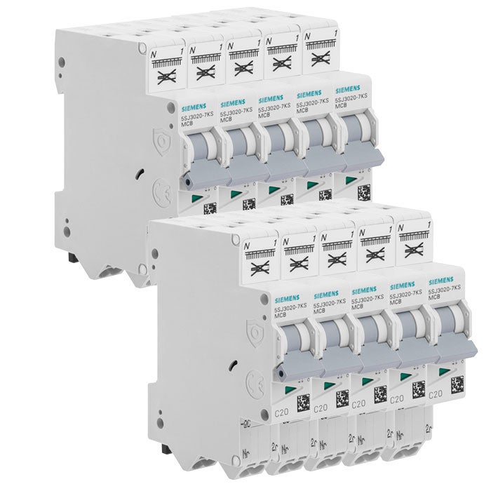 Disjoncteur Siemens, 20A, monophasé 1 pôle + N, Courbe C, 4.5kA, 230V, borne auto, IP20, montage sur rail, lot de 10