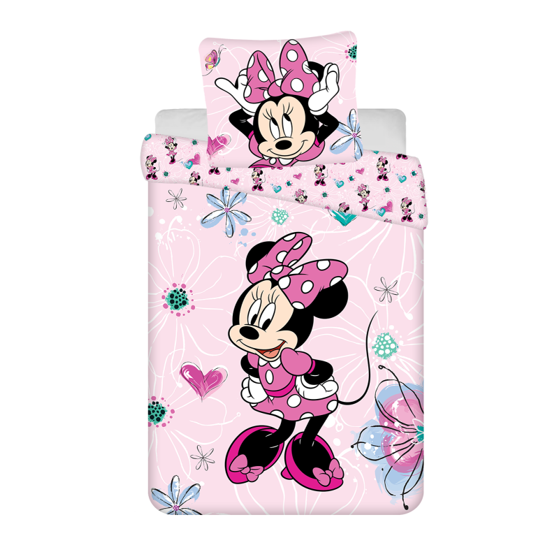 Disney - Parure de lit en coton "Minnie : Fleurs" - Rose - 160 x 200 cm