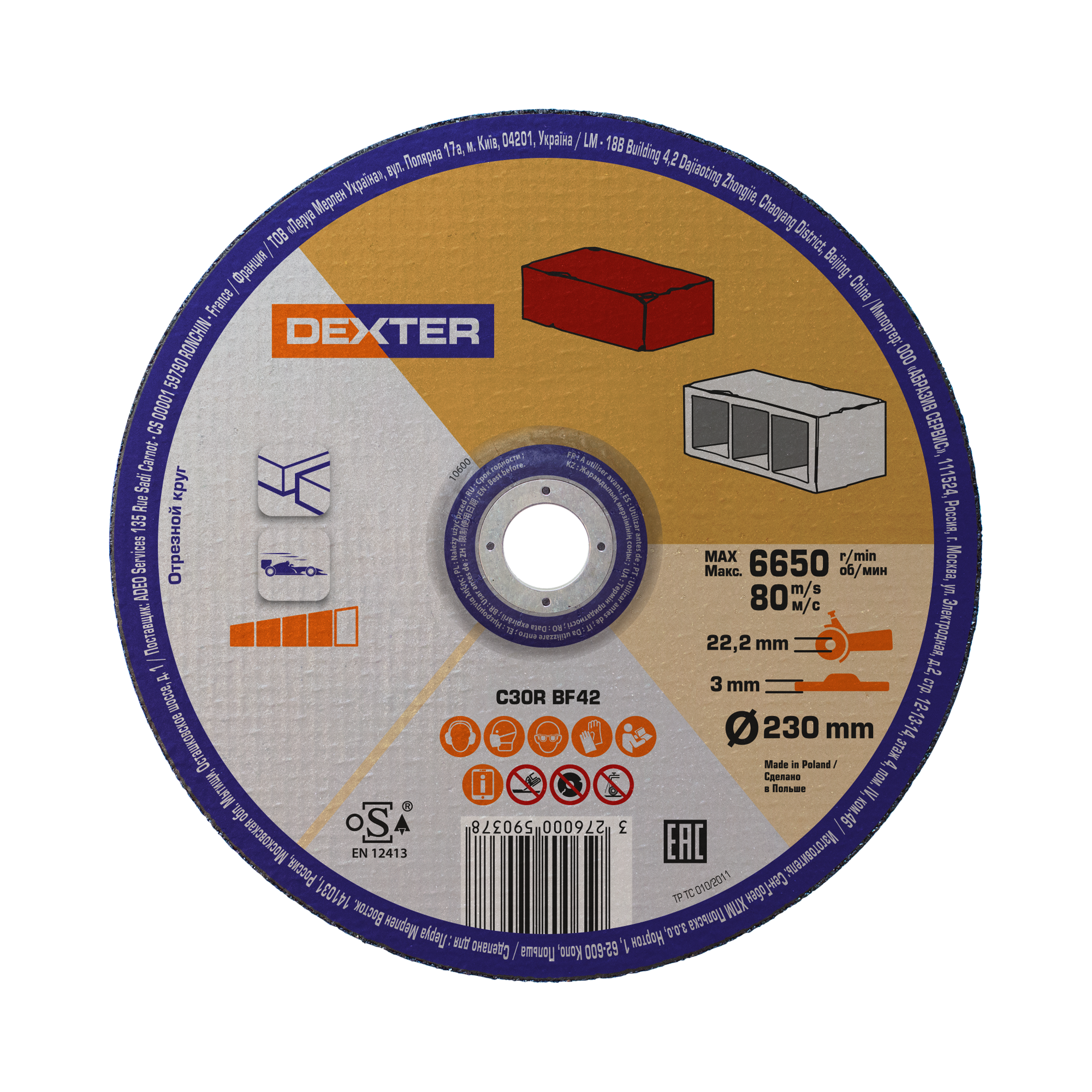 Disque de meulage pour brique et parpaing T42 DEXTER, Ø230 mm