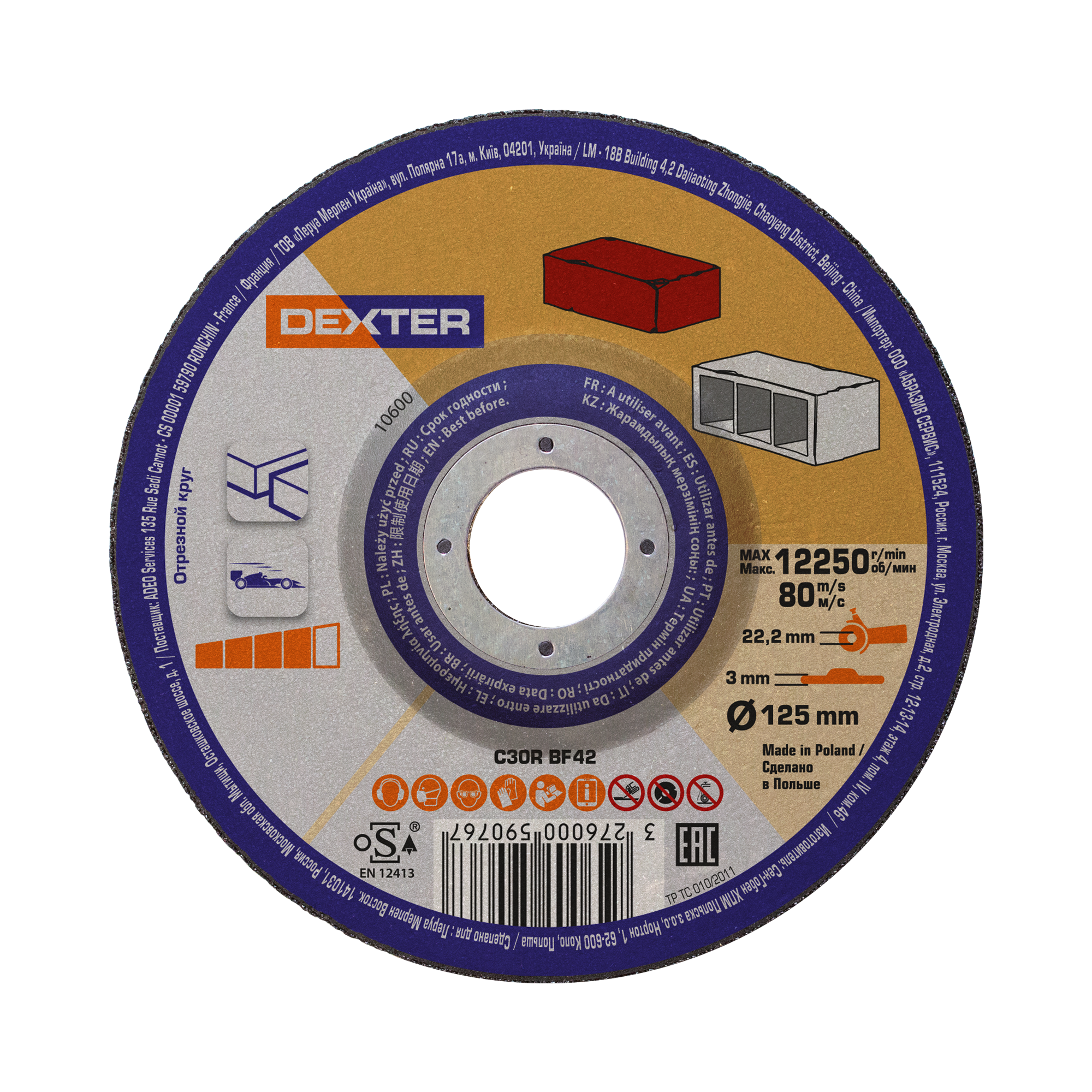 Disque de meulage T42 pour brique et parpaing DEXTER, Ø125.0 mm