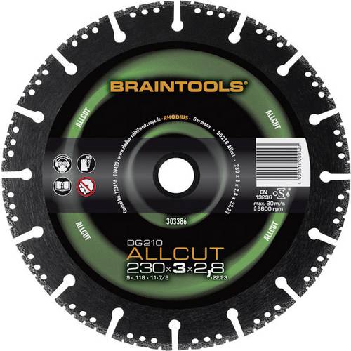 Disque de tronçonneuse diamanté DG210 ALLCUT Tronçonner sans changement d'outils Le DG210 ALLCUT permet de tronçonner rapidement et fiablement diverses matériaux avec une coupe froide Les diamants directement appliqués sur le disque vous fournissent une puissance de coupe constamment bonne jusqu'à une usure compléte. Un tout-terrain avec la vie extrêmement élevé sur la pierre. Bonne performance sur l'acier Données techniques : Aptitude du matériau : permet de tronçonner dans le béton, béton armé, les pierres naturelles, l'acier, le carrelage, le bois, le plastique , GFK · Hauteur segment : 2.5 mm · Largeur segment : 3.0 mm · Ø : 125 mm · Ø intérieur : 22.23 mm