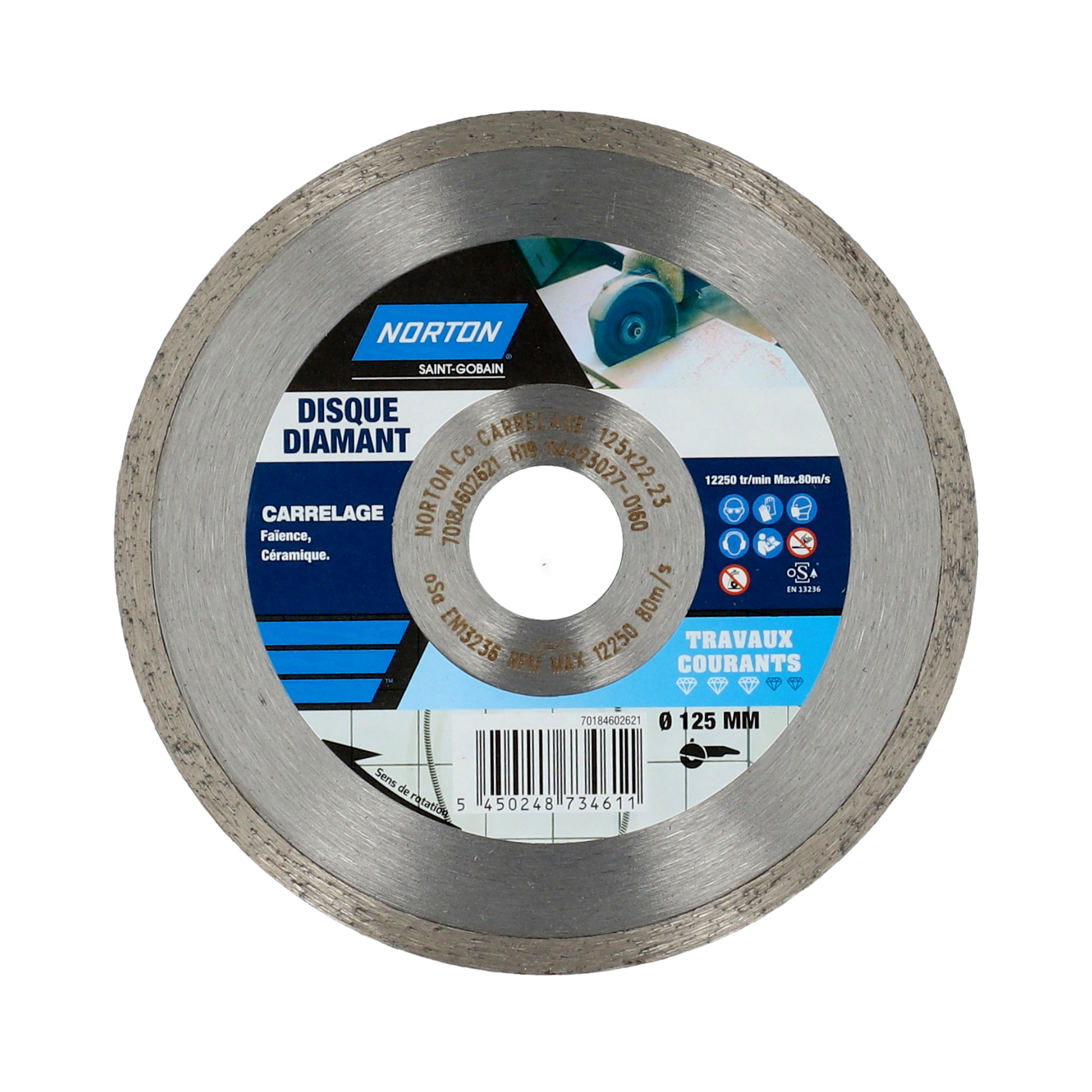 Disque diamant courant plein pour carrelage NORTON, Diam.125 mm