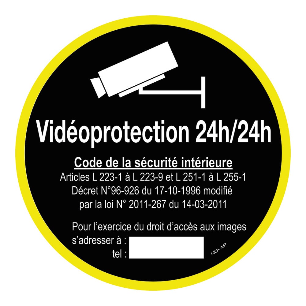 Disque signalisation rigide haute visibilité NOVAP D.8 cm VIDEOPROTECTION 24H/24