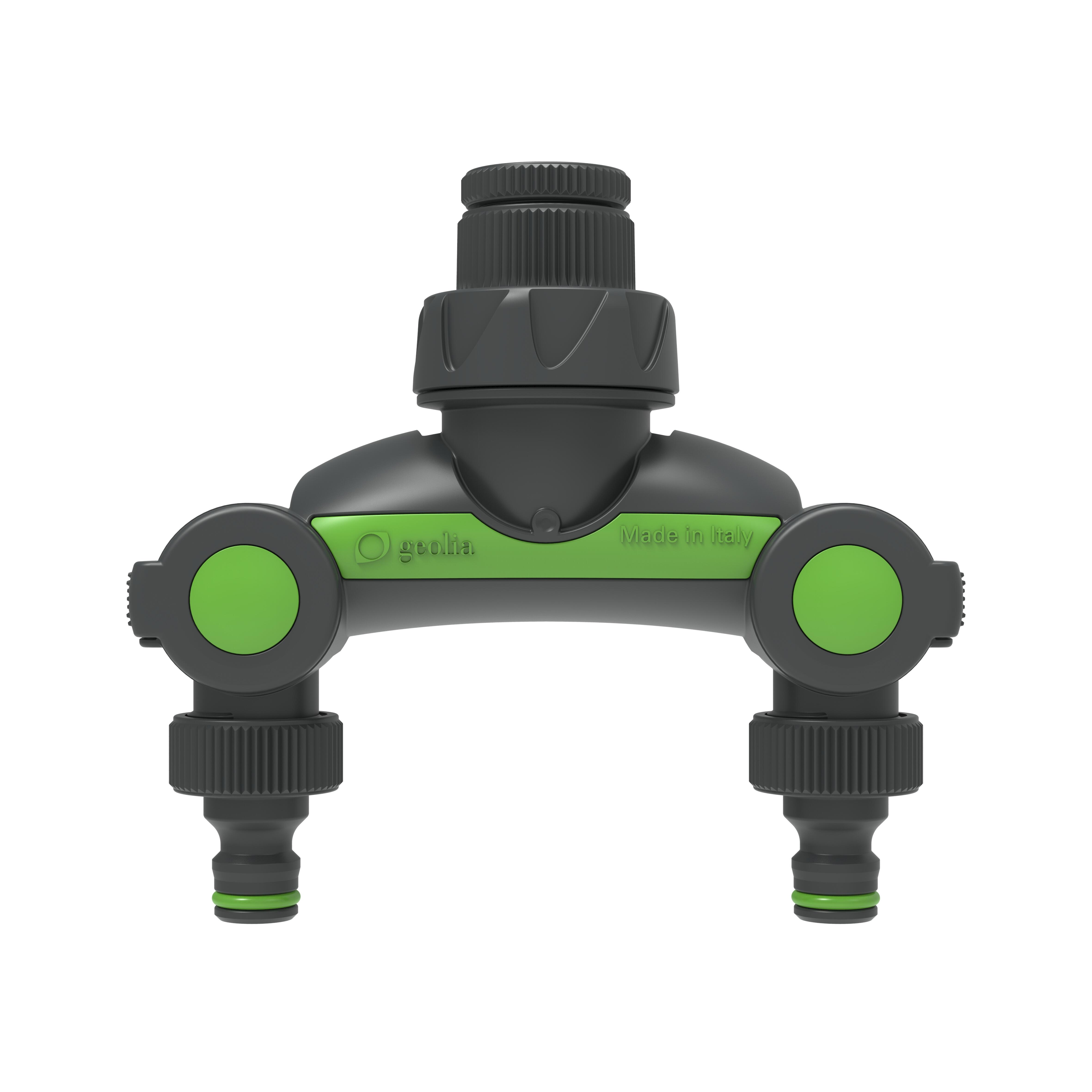 Le sélecteur de robinet 2 voies Geolia est la solution idéale pour diviser votre arrivée d'eau en deux circuits distincts. Ses sorties sont compatibles avec les diamètres 1/2", 3/4" et 1", pour une grande polyvalence de raccordement. Chaque sortie est munie d'un robinet d'arrêt pour une gestion indépendante et précise du débit. Indispensable pour alimenter simultanément un enrouleur et un arroseur.