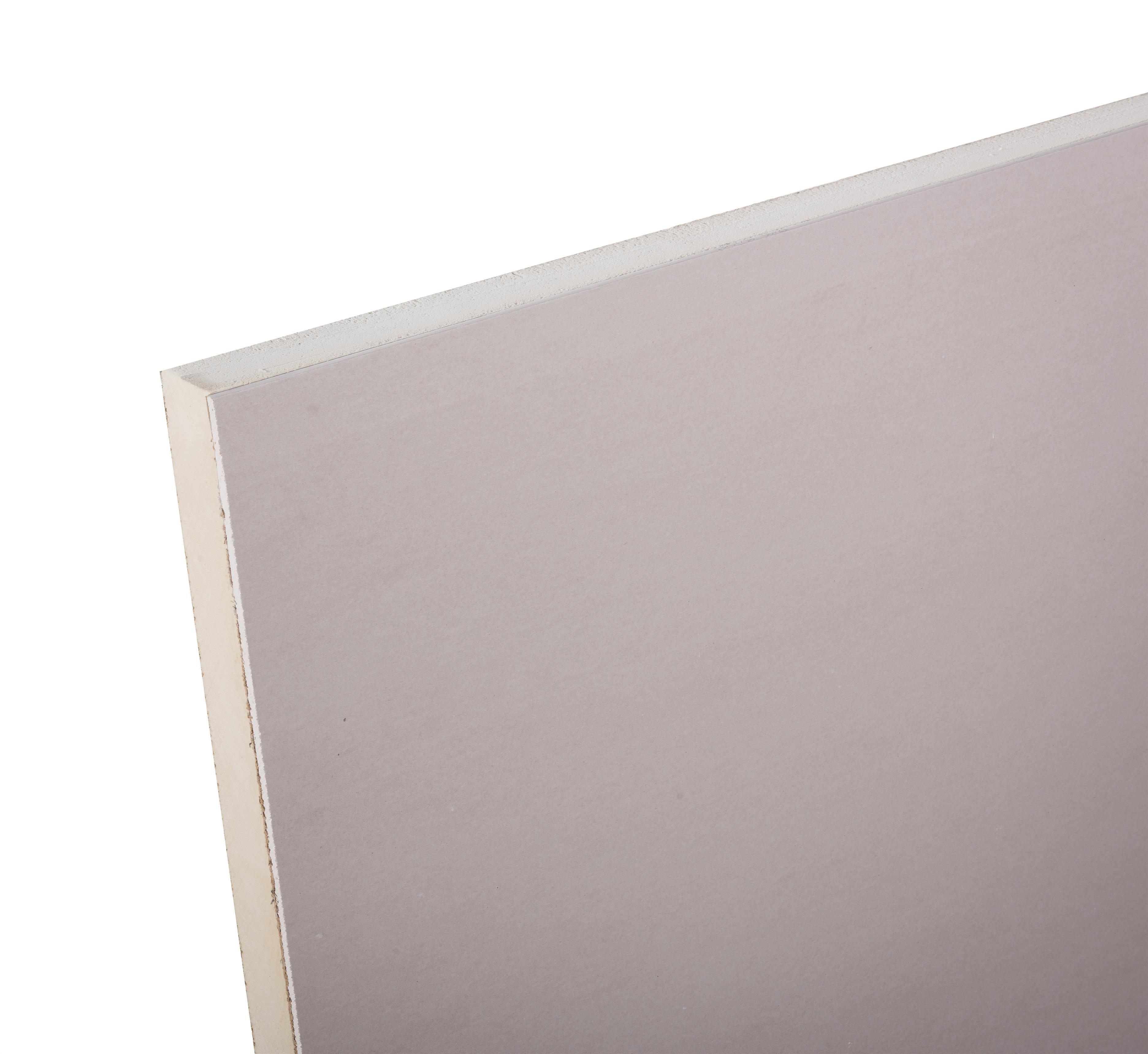 Complexe de doublage Knauf combinant les performances thermiques du polyuréthane avec la facilité de mise en oeuvre des complexes plaque de plâtre + isolant.