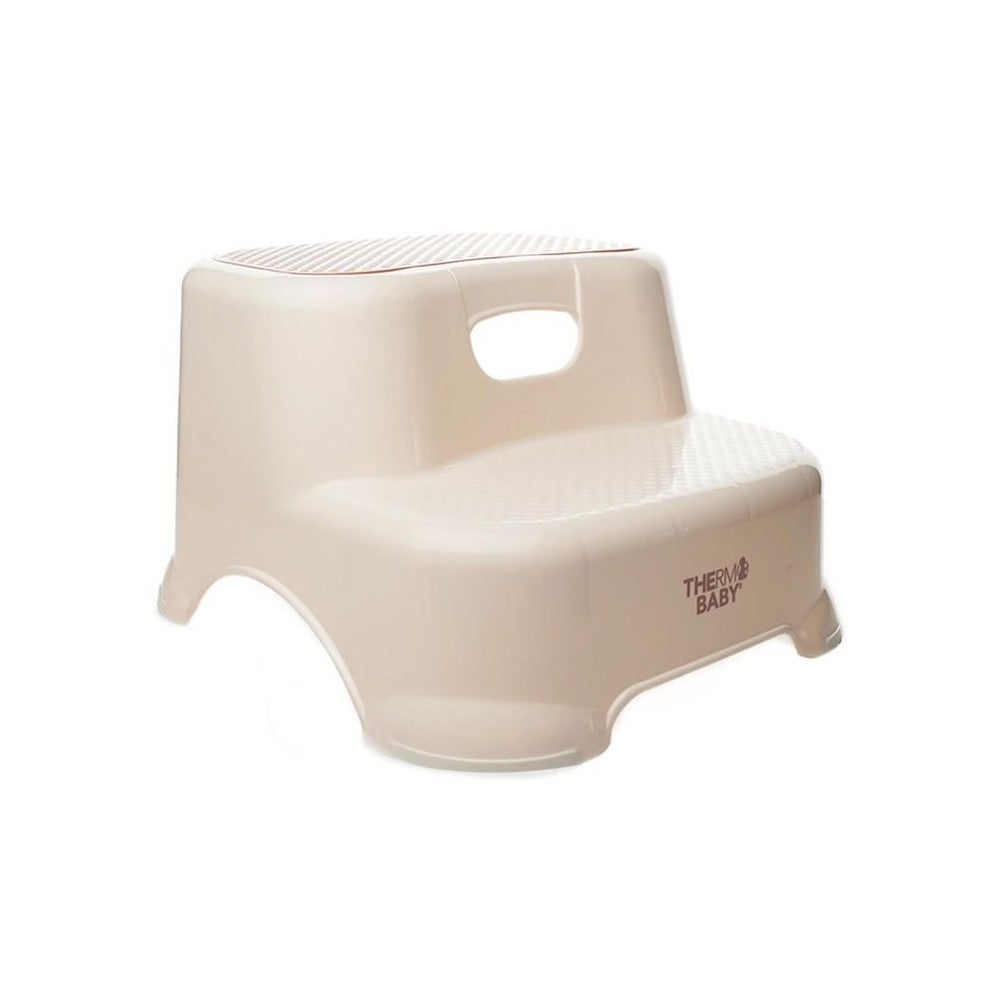 Le marchepied double Thermobaby est conçu en polypropylène résistant avec une surface antidérapante et des patins anti-glisse qui garantissent stabilité et sécurité pour les enfants dès 18 mois.
