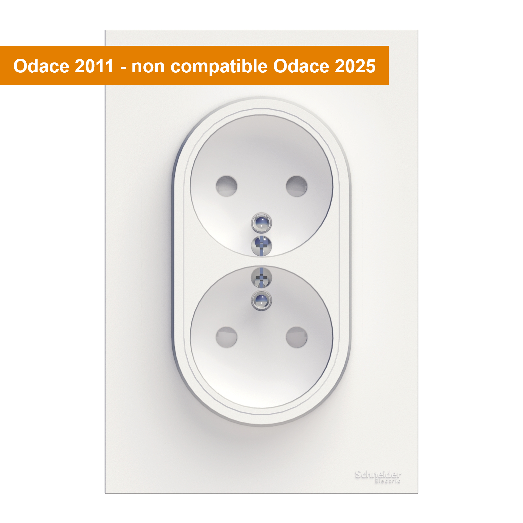 Double prise avec terre verticale complet Odace, SCHNEIDER ELECTRIC, blanc